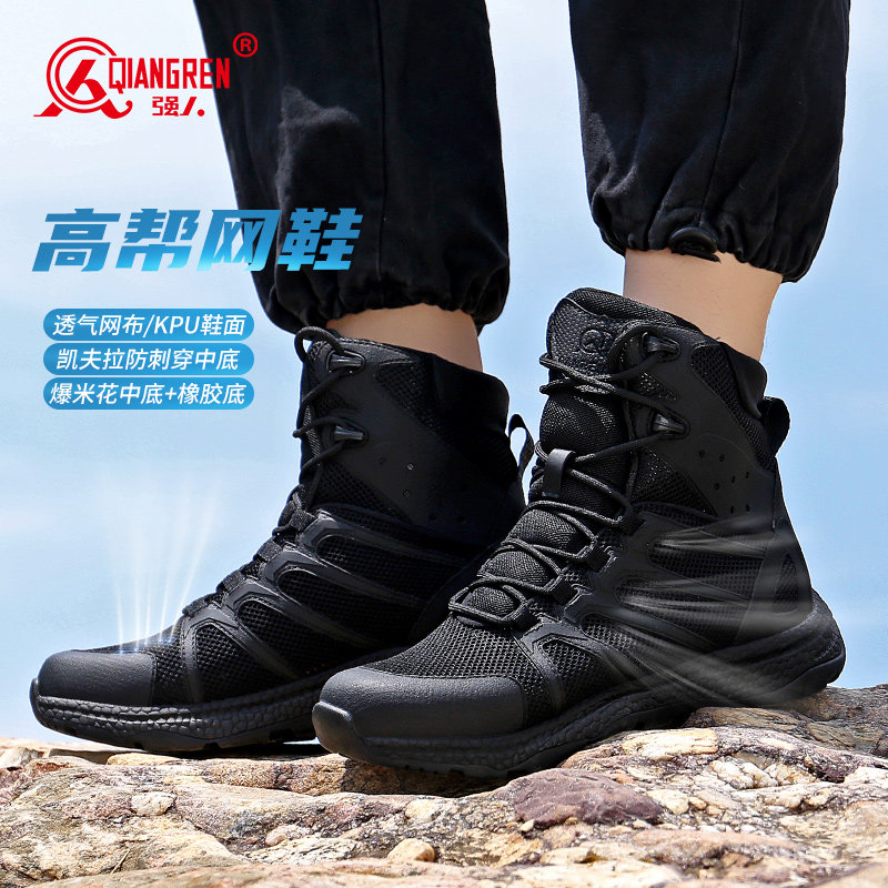 强人3515男靴夏季透气网面短靴新式训练靴防刺穿户外战术靴登山靴
