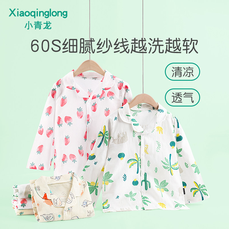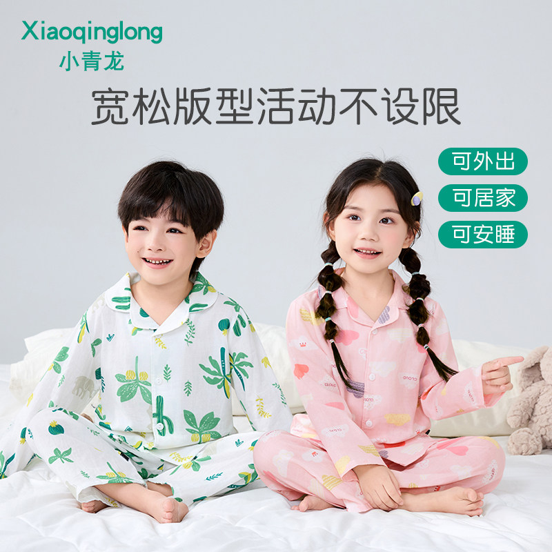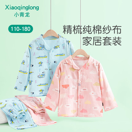 小青龙春夏新品休闲翻领儿童家居套装纯棉纱布睡衣男童女童中大童