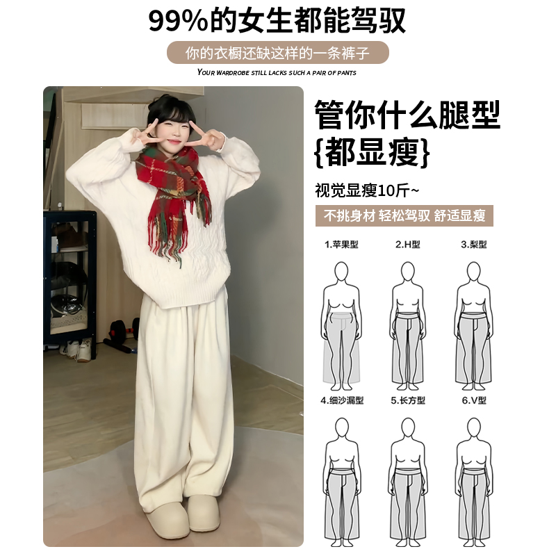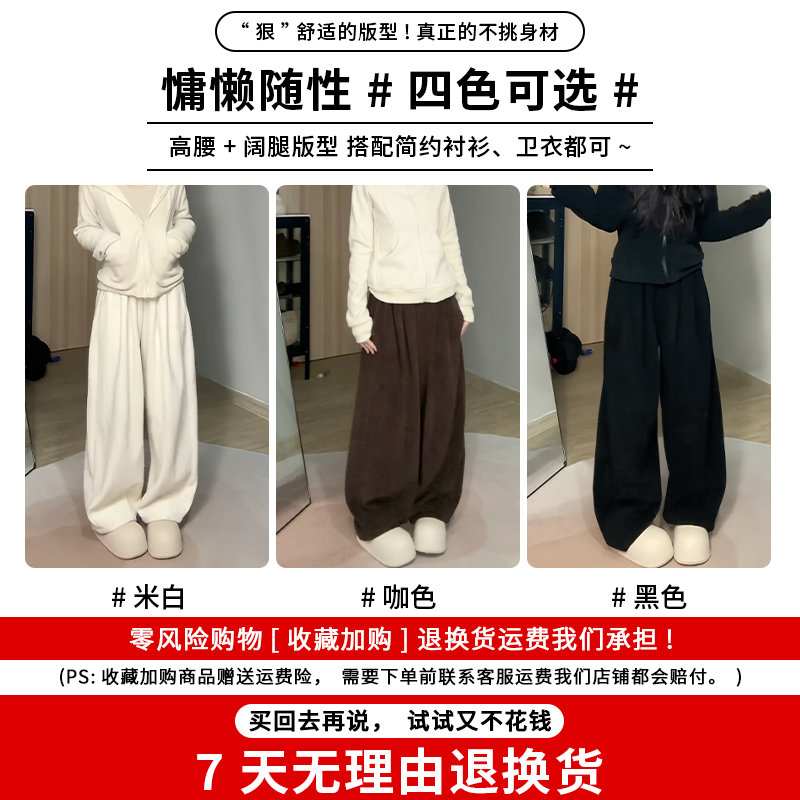 雪尼尔阔腿裤女秋冬垂感加绒裤子