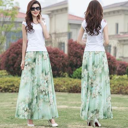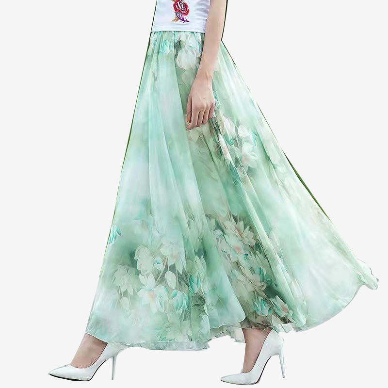 2022碎花新款夏季雪纺半身裙大摆百褶裙高腰大码沙滩裙半身长裙女
