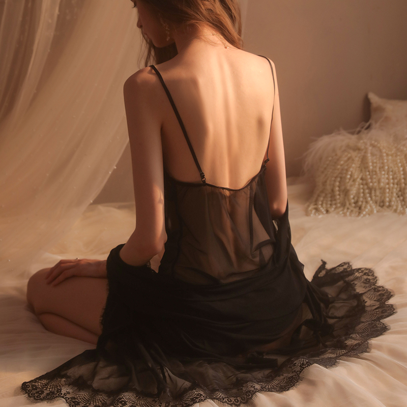 性感吊带睡裙女网纱纯欲风夏季薄款蕾丝美背睡衣家居服晨袍套装