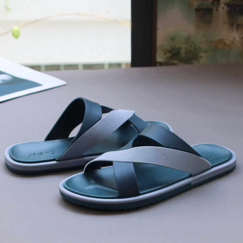 泰国橡胶男士拖鞋外穿经典休闲大气纯色轮胎底防滑耐磨抗菌防臭鞋