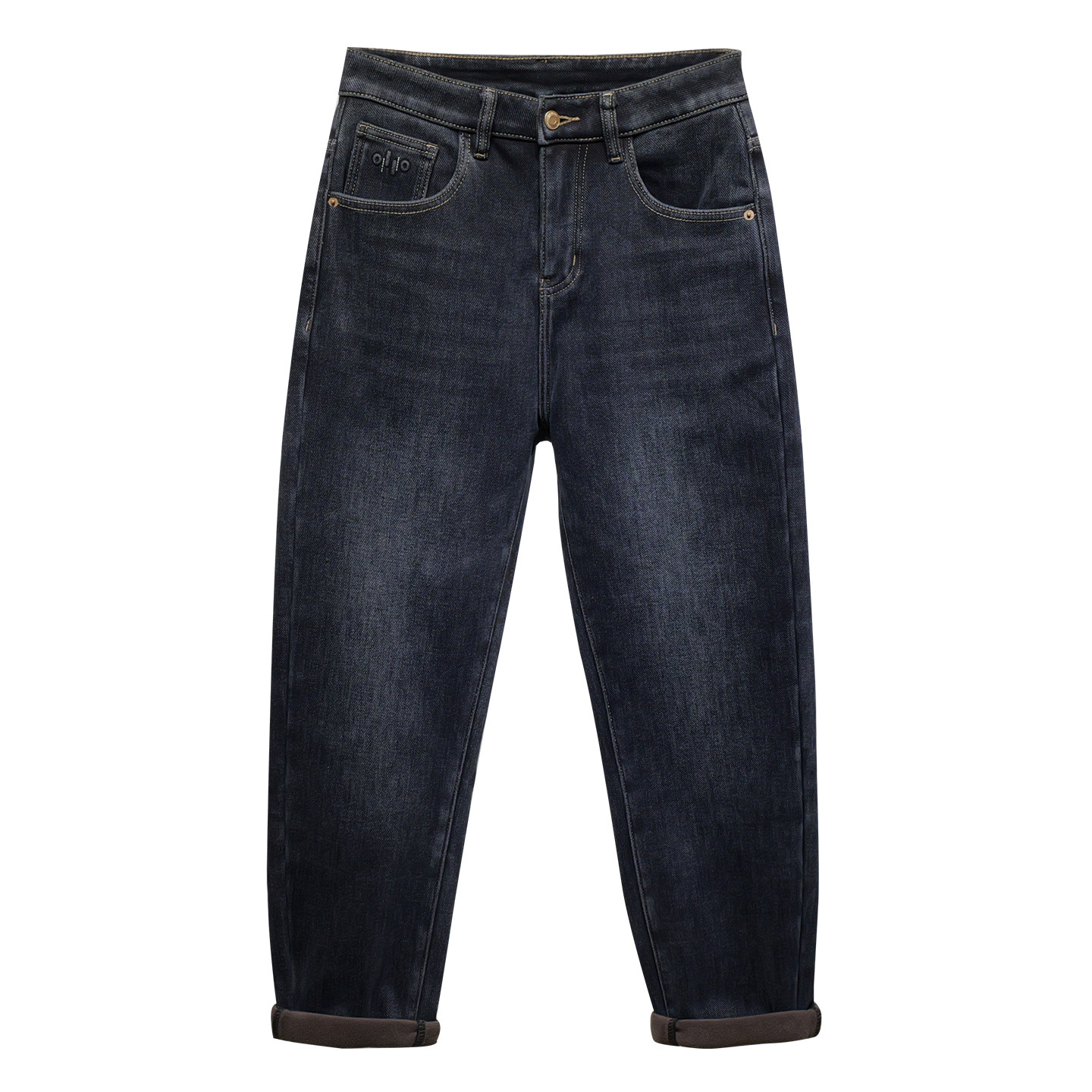 布冷布热 新款冬季加绒加厚宽松直筒牛仔裤男厚绒弹力柔软厚长裤
