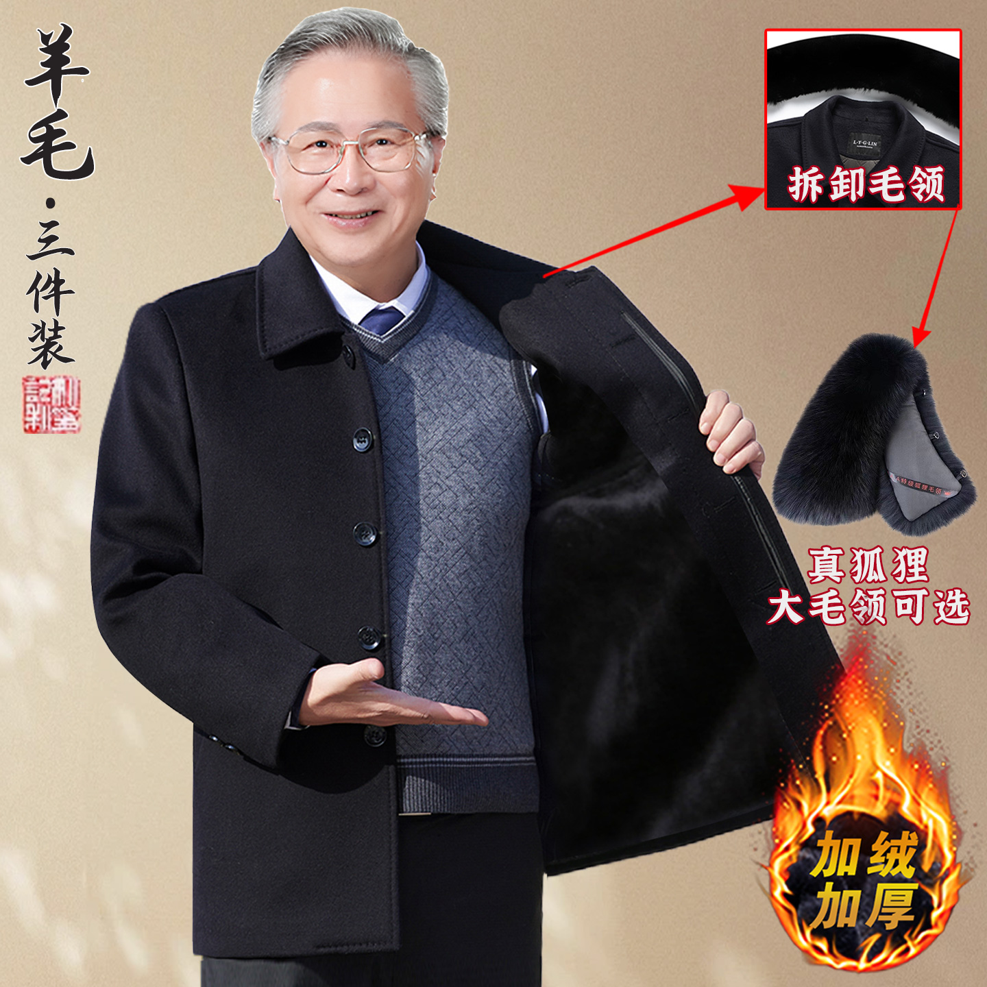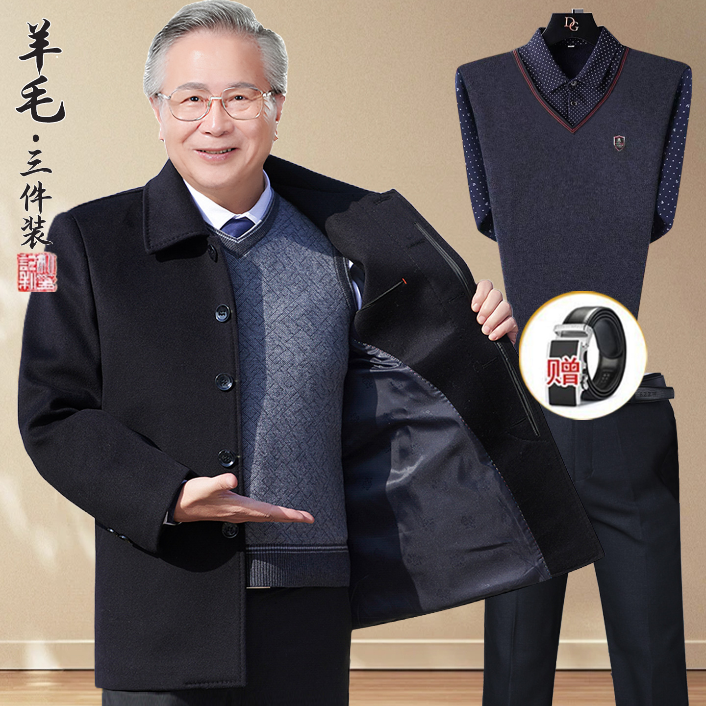 60到70岁老年人爷爷夹克外套男秋装套装50中老年爸爸毛呢大衣冬装