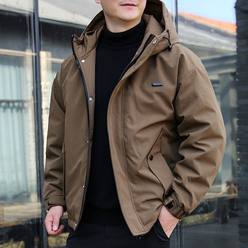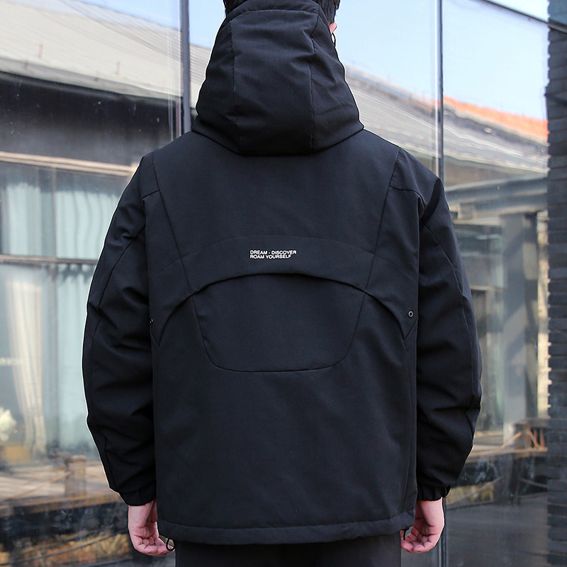 2025冬季加厚连帽冲锋衣羽绒服男加肥加大码纯色潮流保暖短款外套