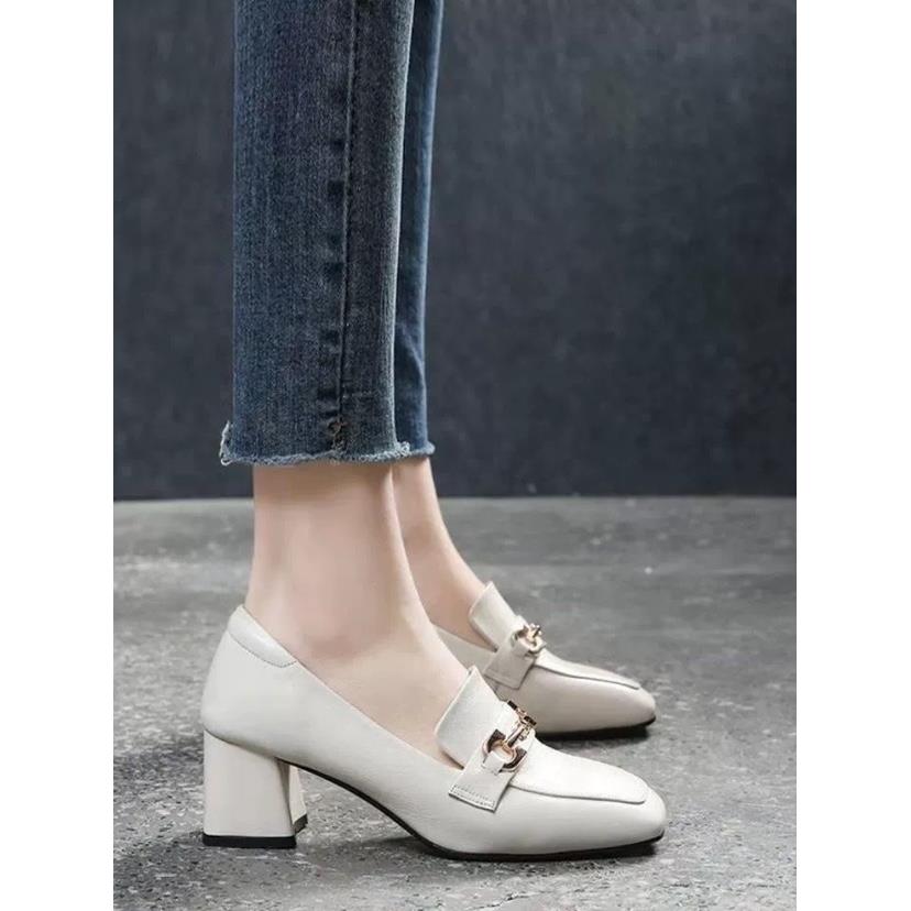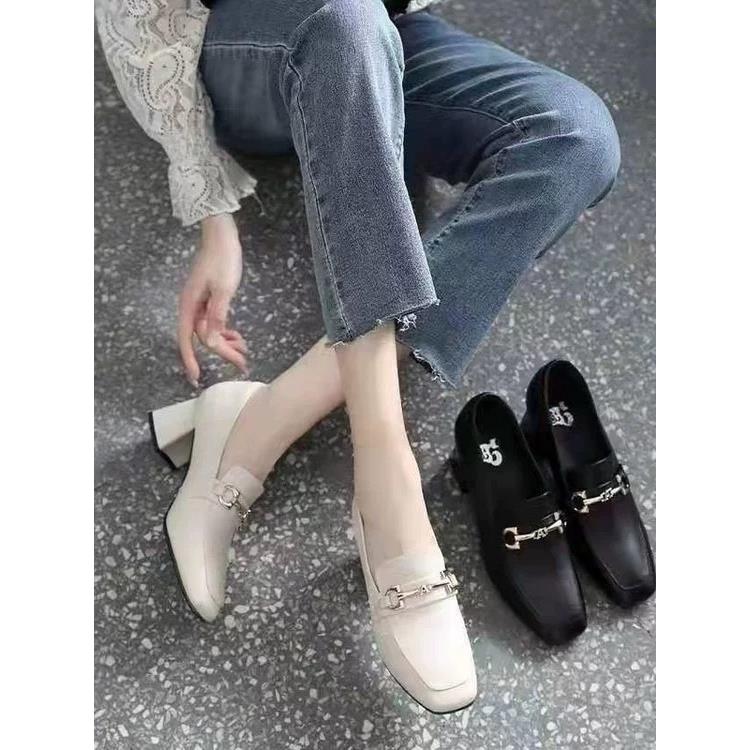 2025年秋季新款品牌真皮单鞋女乐福鞋粗跟软底小皮鞋英伦风女鞋子
