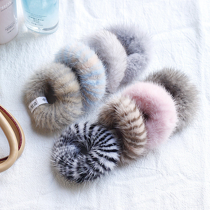 清仓爆款进口水貂毛球彩色发圈貂毛辫圈皮草发绳真毛毛球辫圈发饰