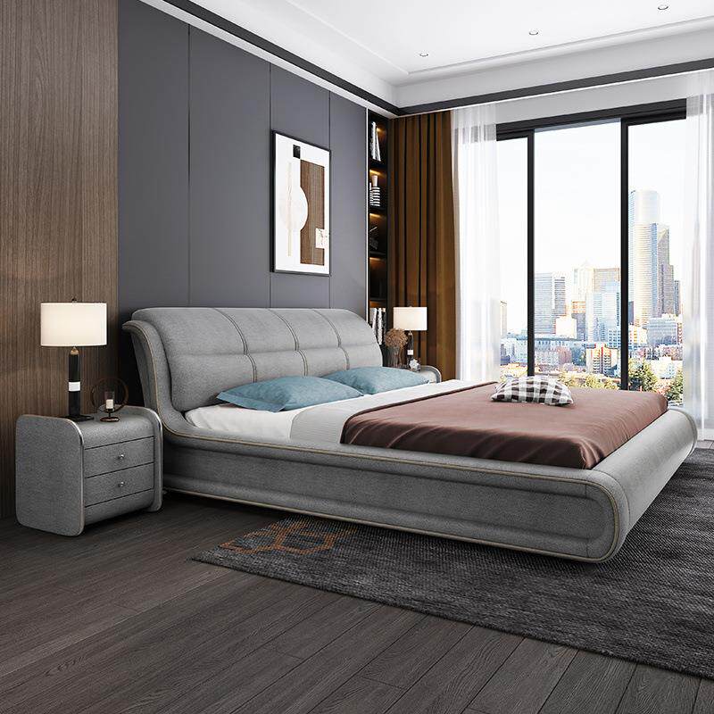 简约现代免洗科技布布艺床主卧双人.米.米榻榻米储物床婚