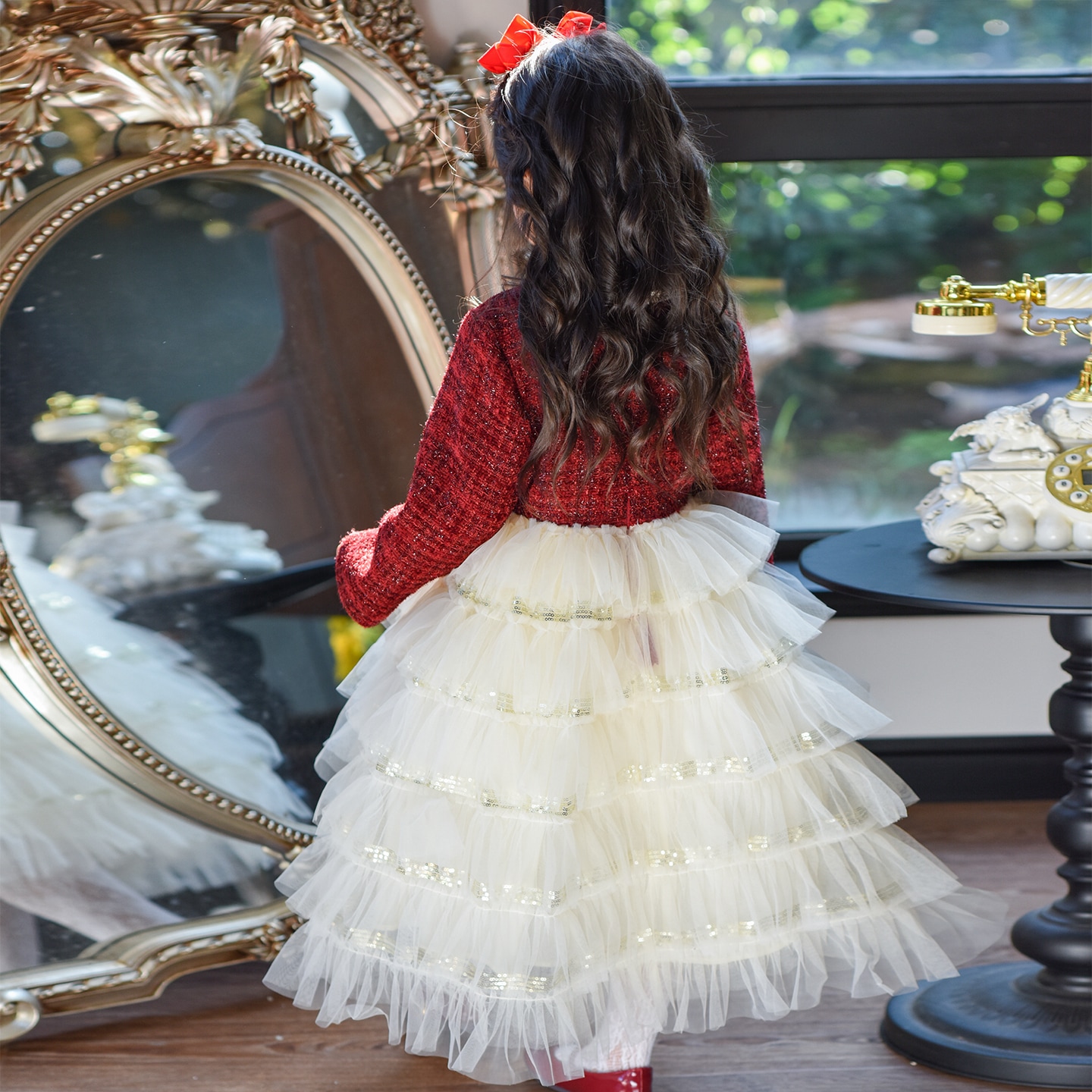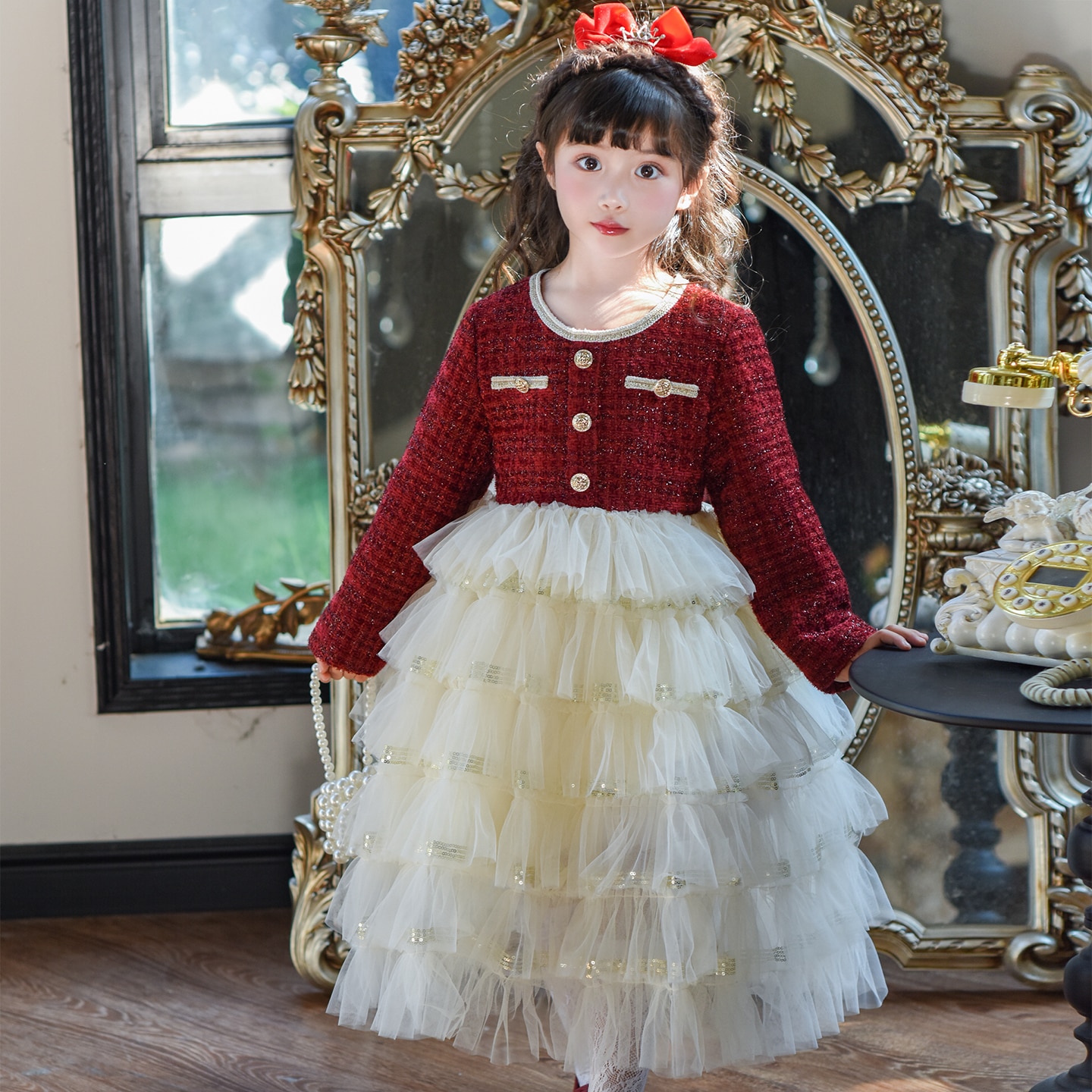 女童秋装连衣裙2025新款小女孩洋气红色蛋糕裙子儿童公主裙秋冬款