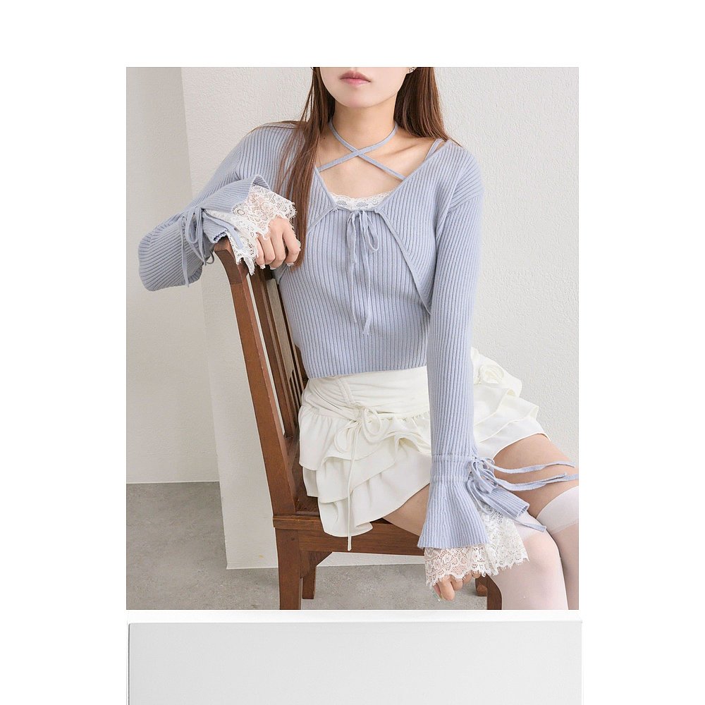 1h可退 日本直邮OLIVE des OLIVE 女装 修身蕾丝边针织两件套 105