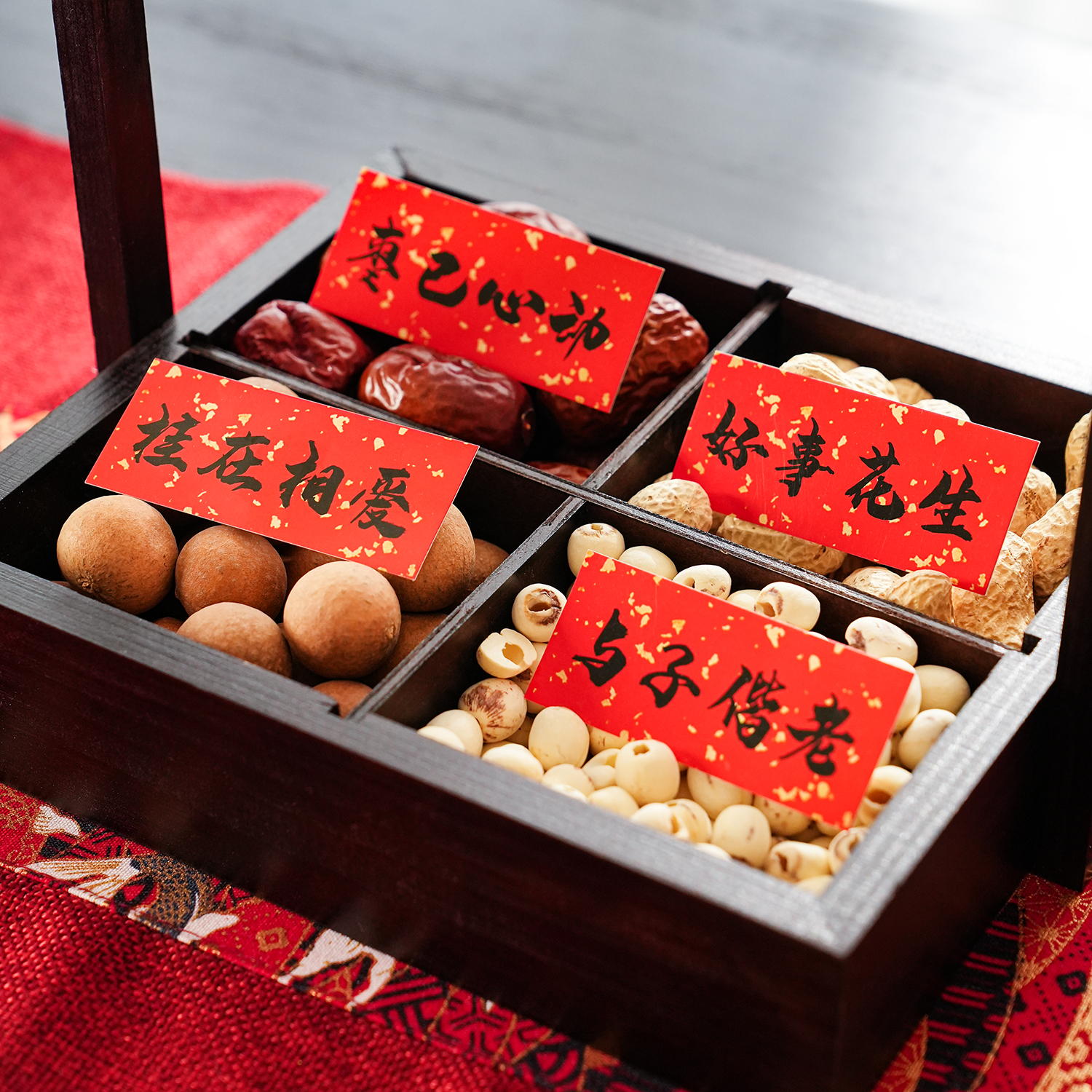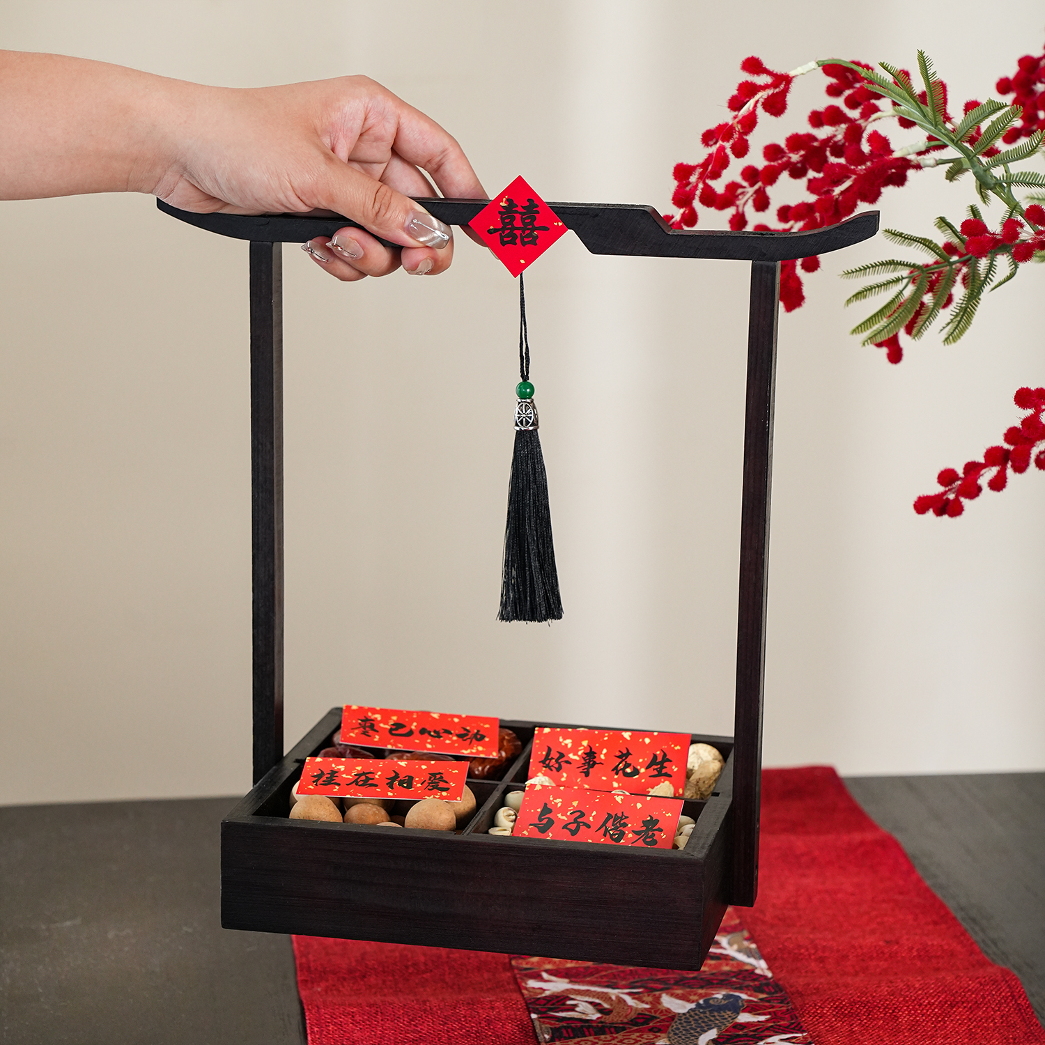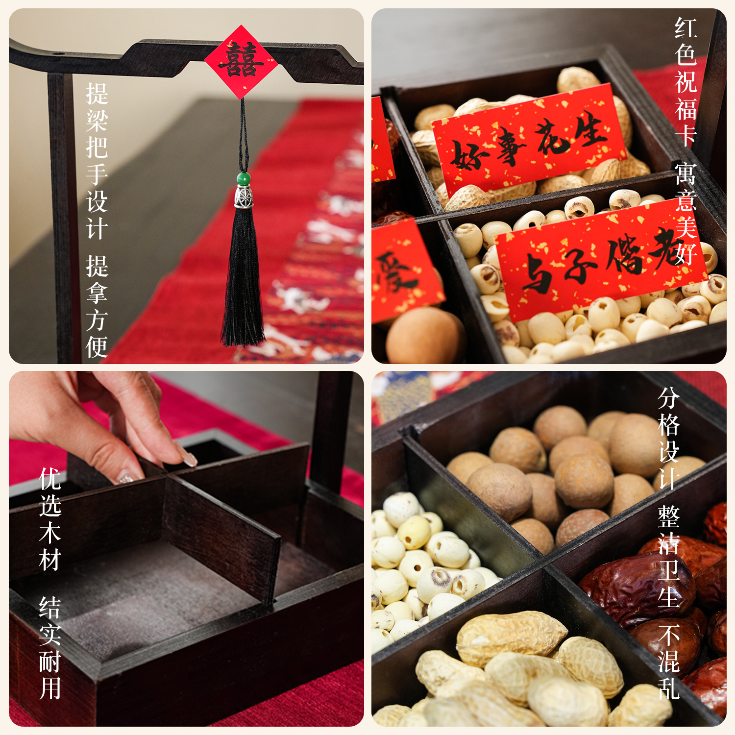 中式早生贵子果盘提篮干果喜糖盒婚房布置组合四宫格订婚结婚摆台