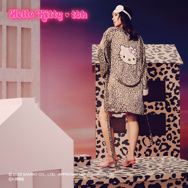 tbh野兽派家居三丽鸥Hello Kitty烫钻真丝晨袍女士睡衣家居服睡袍