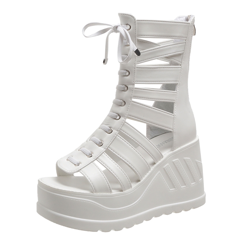 2023夏季新款10cm内增高凉鞋厚底镂空显瘦凉靴女百W搭高跟坡跟凉