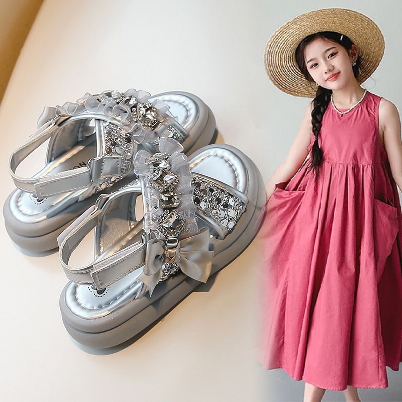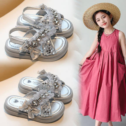 女童凉鞋软底亮片花朵鞋子中大童凉拖鞋夏季新款小女孩休闲沙滩鞋