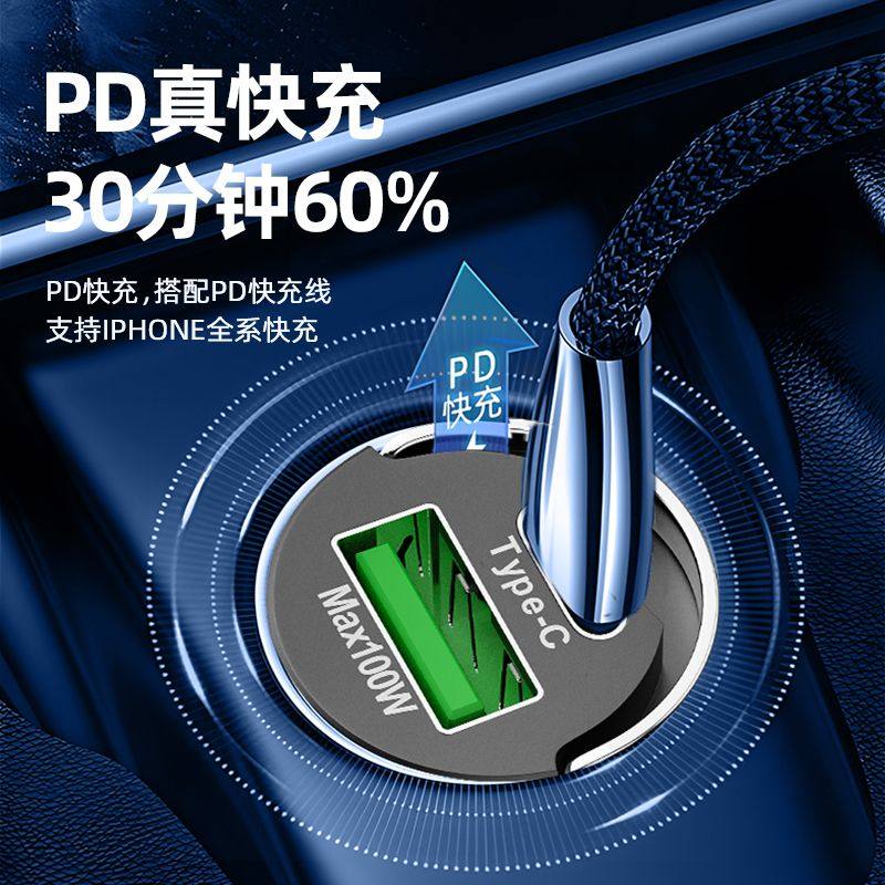 影巨人隐形车载充电器130W超级闪充苹果15/typec快充点烟器转换头