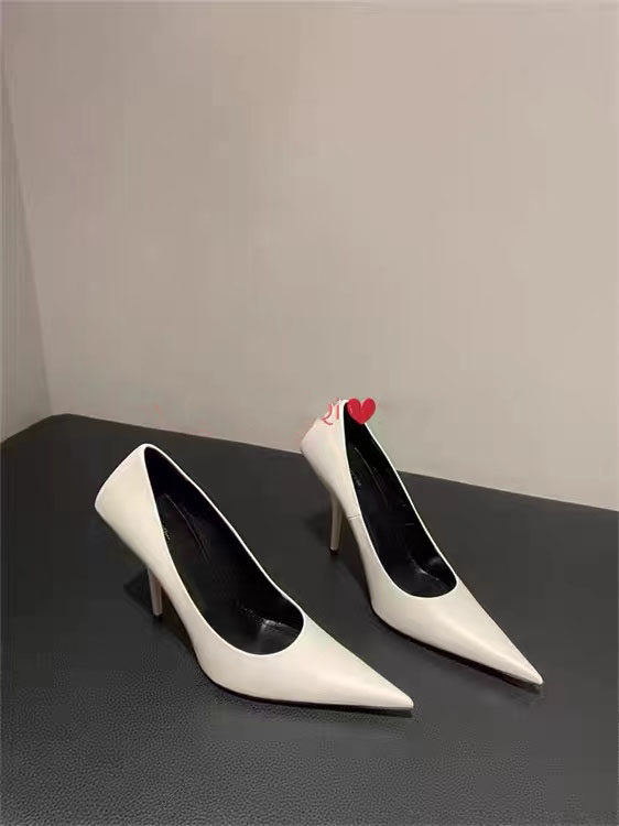 肯豆同款尖头单鞋24春夏新款欧美白色浅口高跟鞋细跟辣妹细跟女鞋