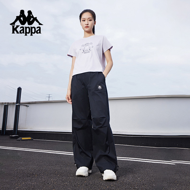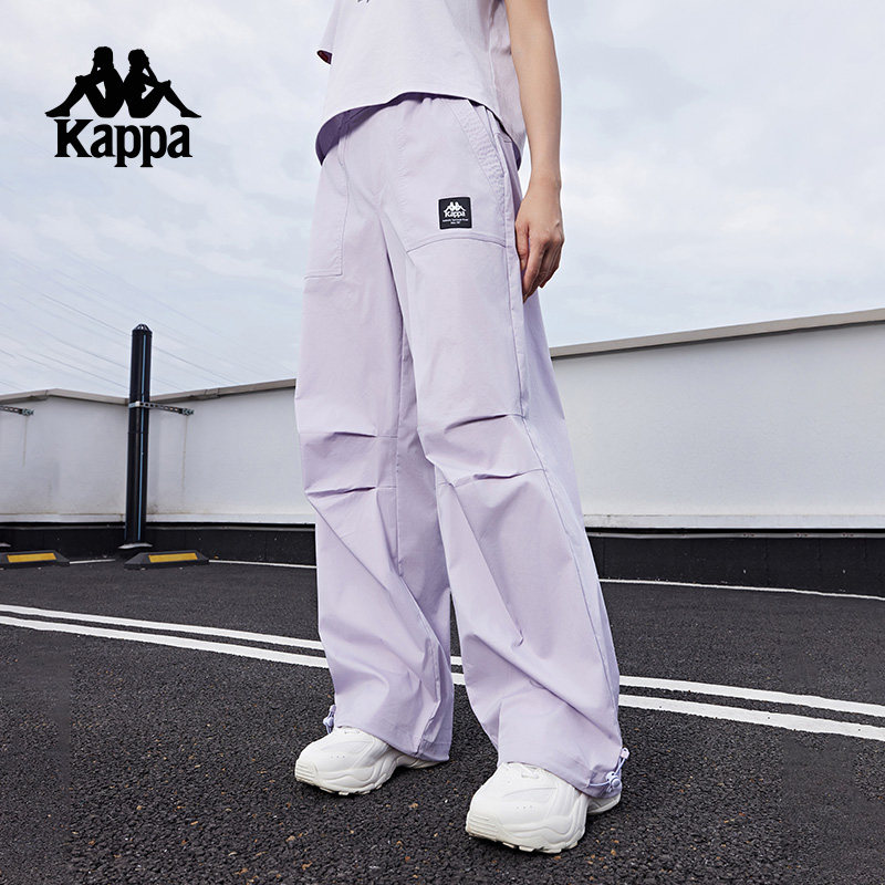 Kappa卡帕背靠背春秋轻薄透气运动长裤女工装裤梭织休闲裤直筒裤