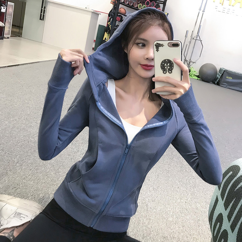 岚纹加厚瑜伽服女秋冬连帽拉链运动外套休闲户外健身夹克跑步上衣