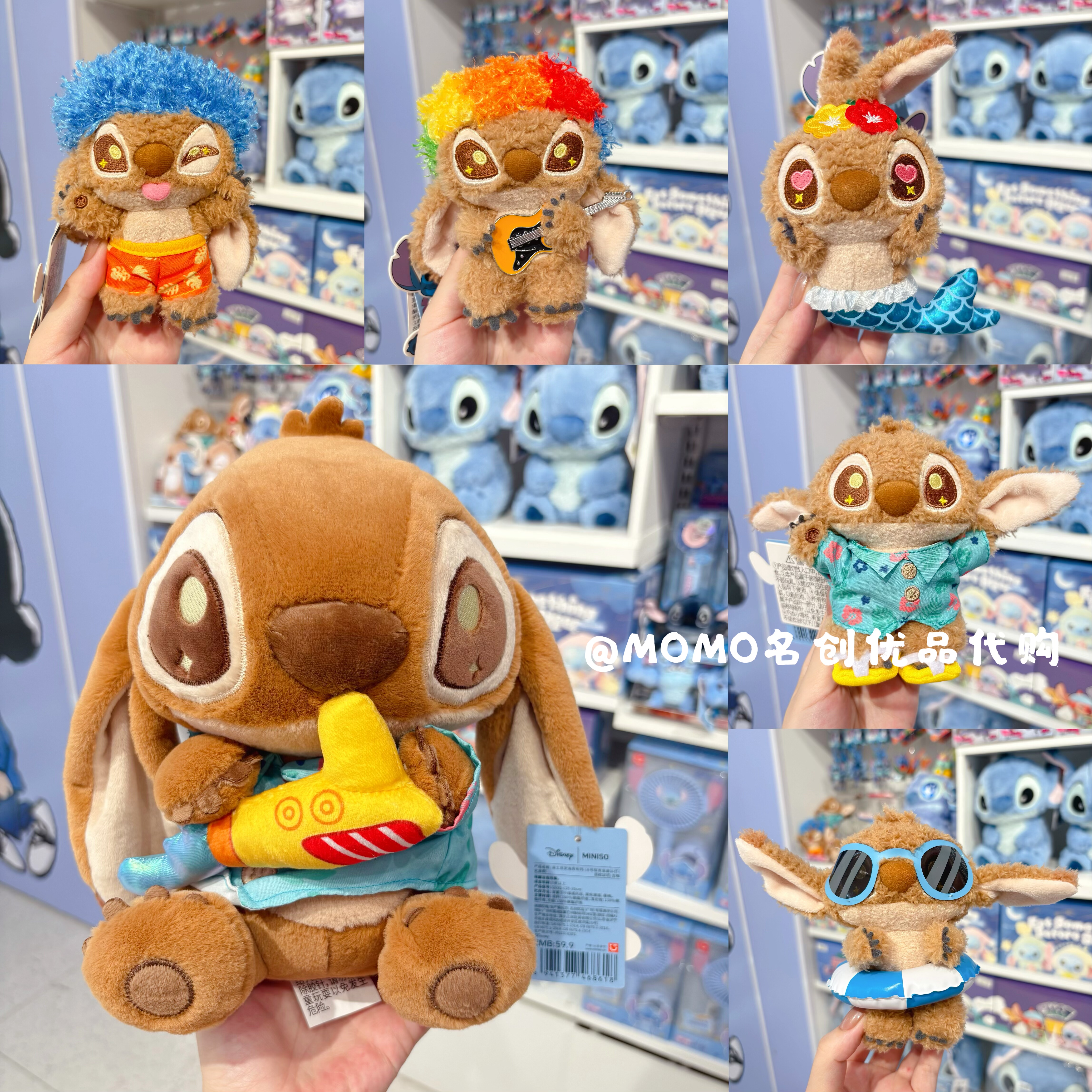 miniso名创优品迪士尼史迪奇棕皮毛绒挂件钥匙扣史迪仔小金毛公仔