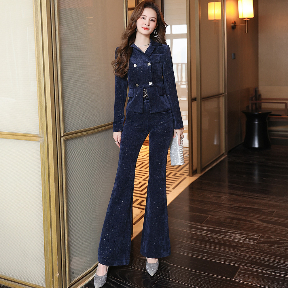 高级感气质时尚套装女2025秋冬装新款时髦职业装显瘦小外套喇叭裤