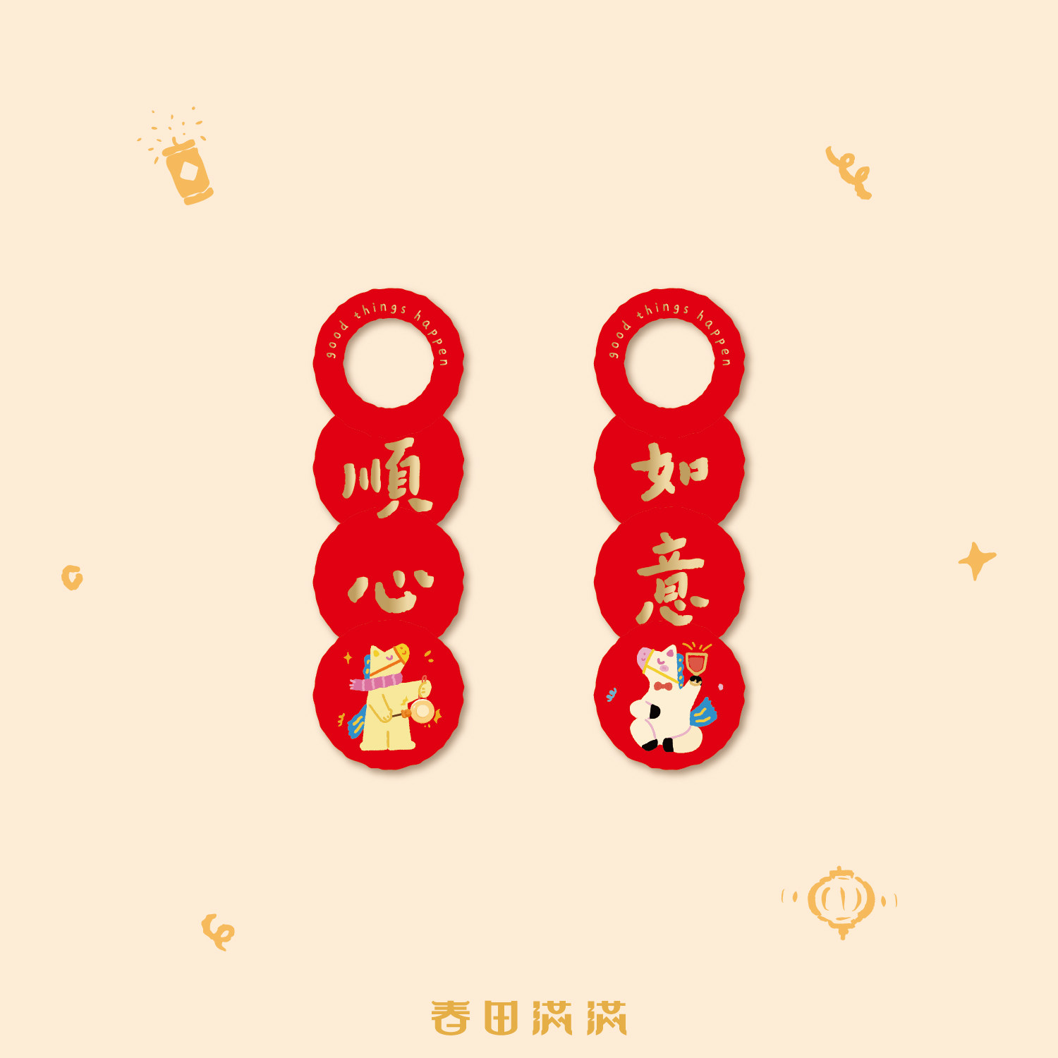 2026马年门挂原创春节过年门把手新年布置可爱小挂件喜庆圣诞装饰