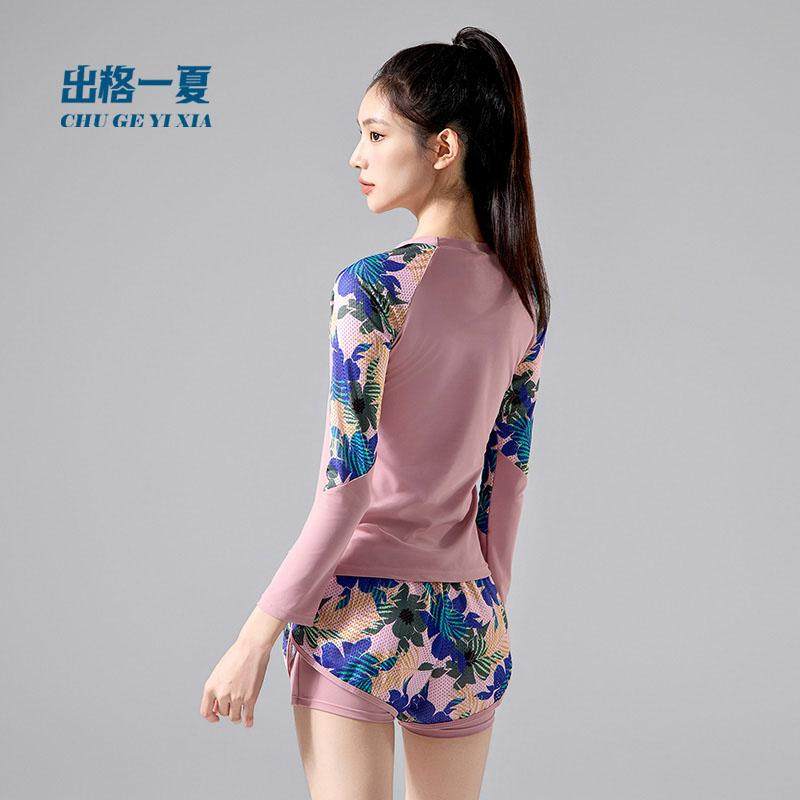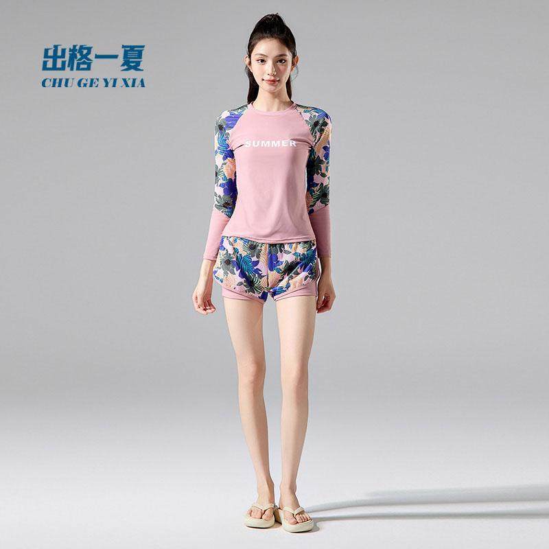 长袖分体泳衣女款 大码舒适运动高弹速干 泳池温泉度假泳装 95019