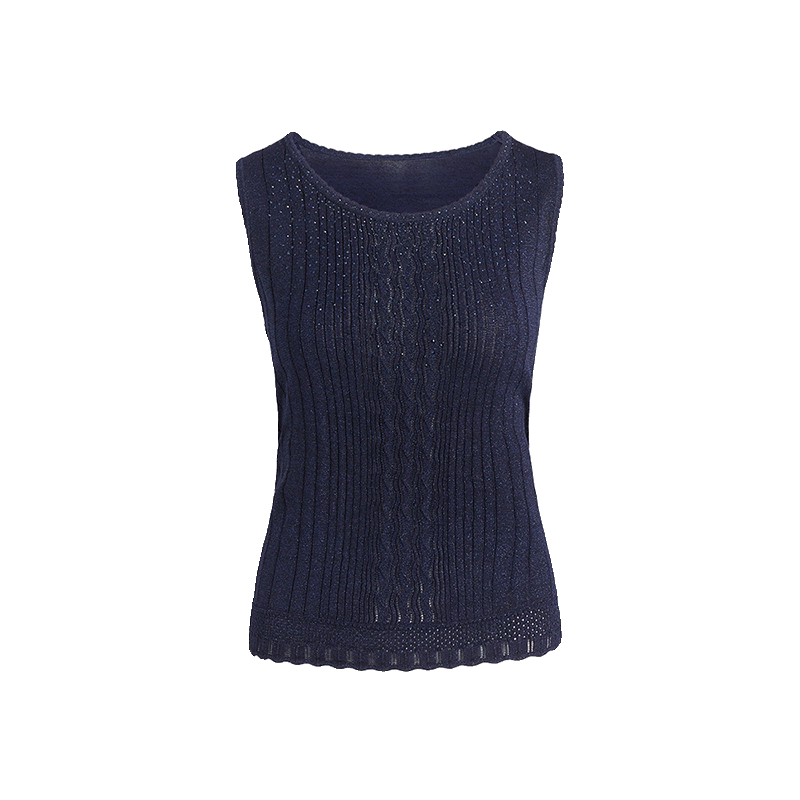 商场同款皮尔卡丹女装针织衫提花无袖圆领通勤百搭打底衫内搭