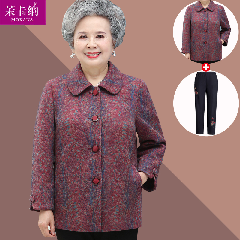 奶奶春秋外套女中老年人秋装呢子上衣60岁70老人太太毛呢衣服套装