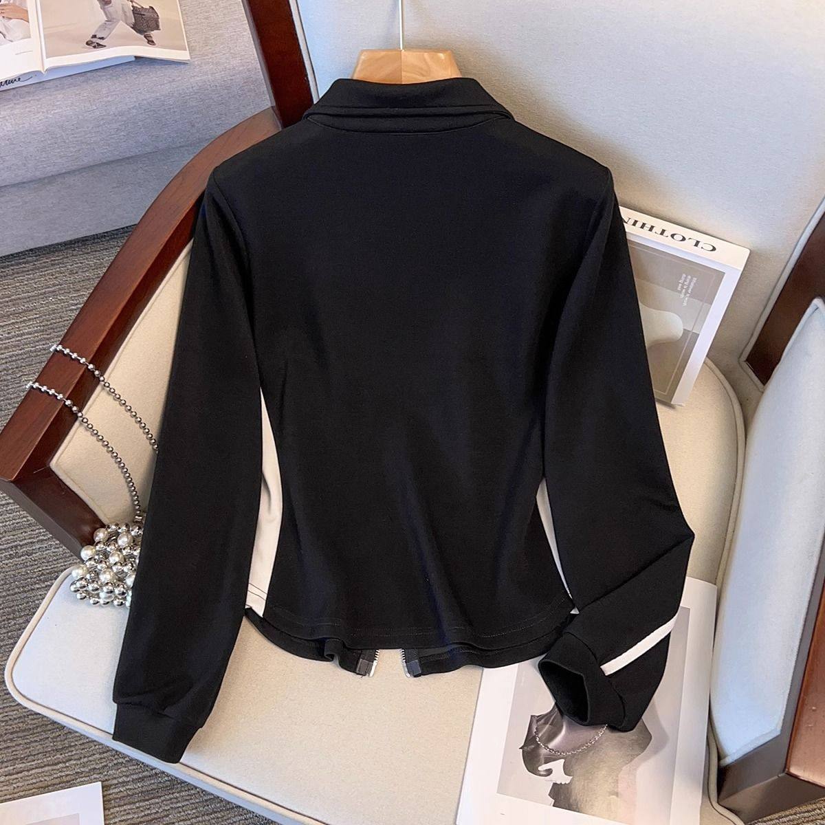 新款大码秋装新款遮肚显瘦高腰阔腿裤套装拉链宽松外套上衣胖mm女