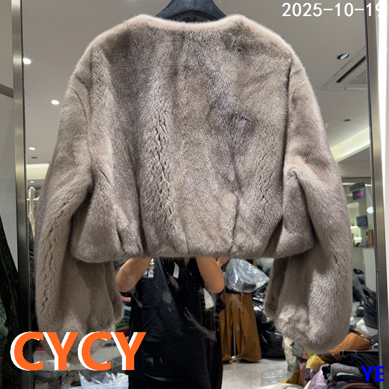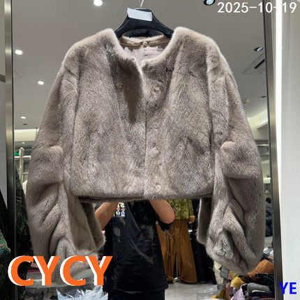 欧洲站2025秋冬新款时尚百搭圆领纯色简约水貂毛皮草外套女611-2