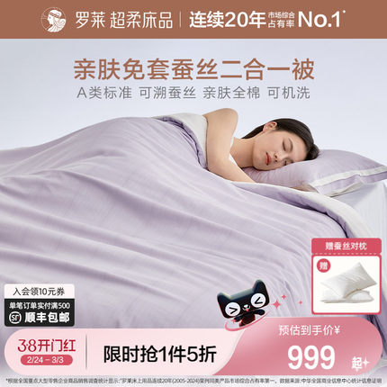 罗莱家纺26新品全棉提花100%蚕丝被子可机洗免被套二合一子母被芯