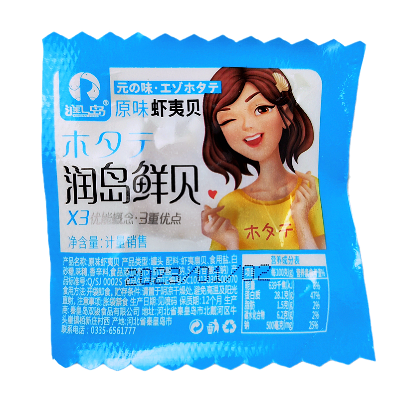 润岛虾夷贝纯扇贝鲜贝原味香辣即食小包装零食秦皇岛北戴河特产