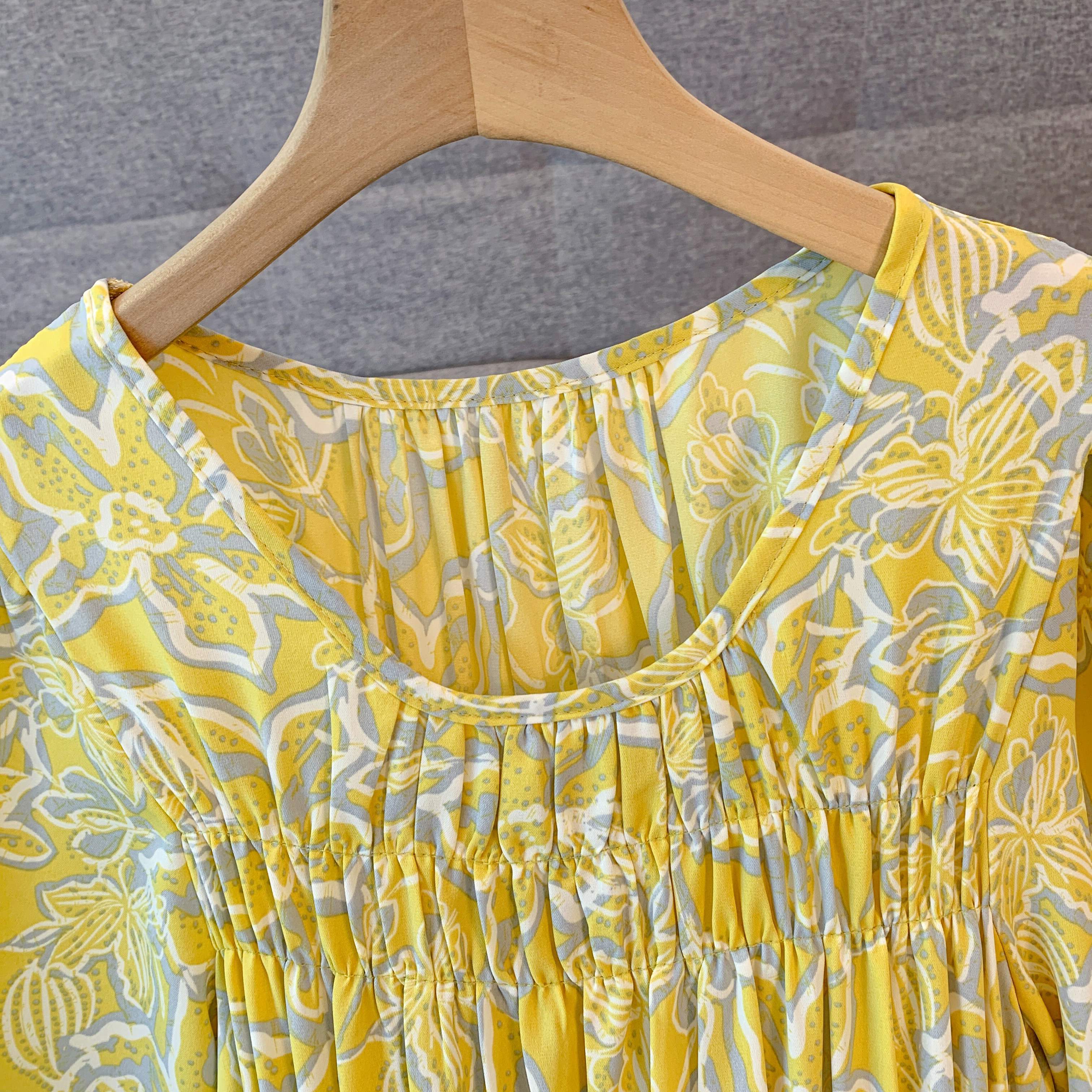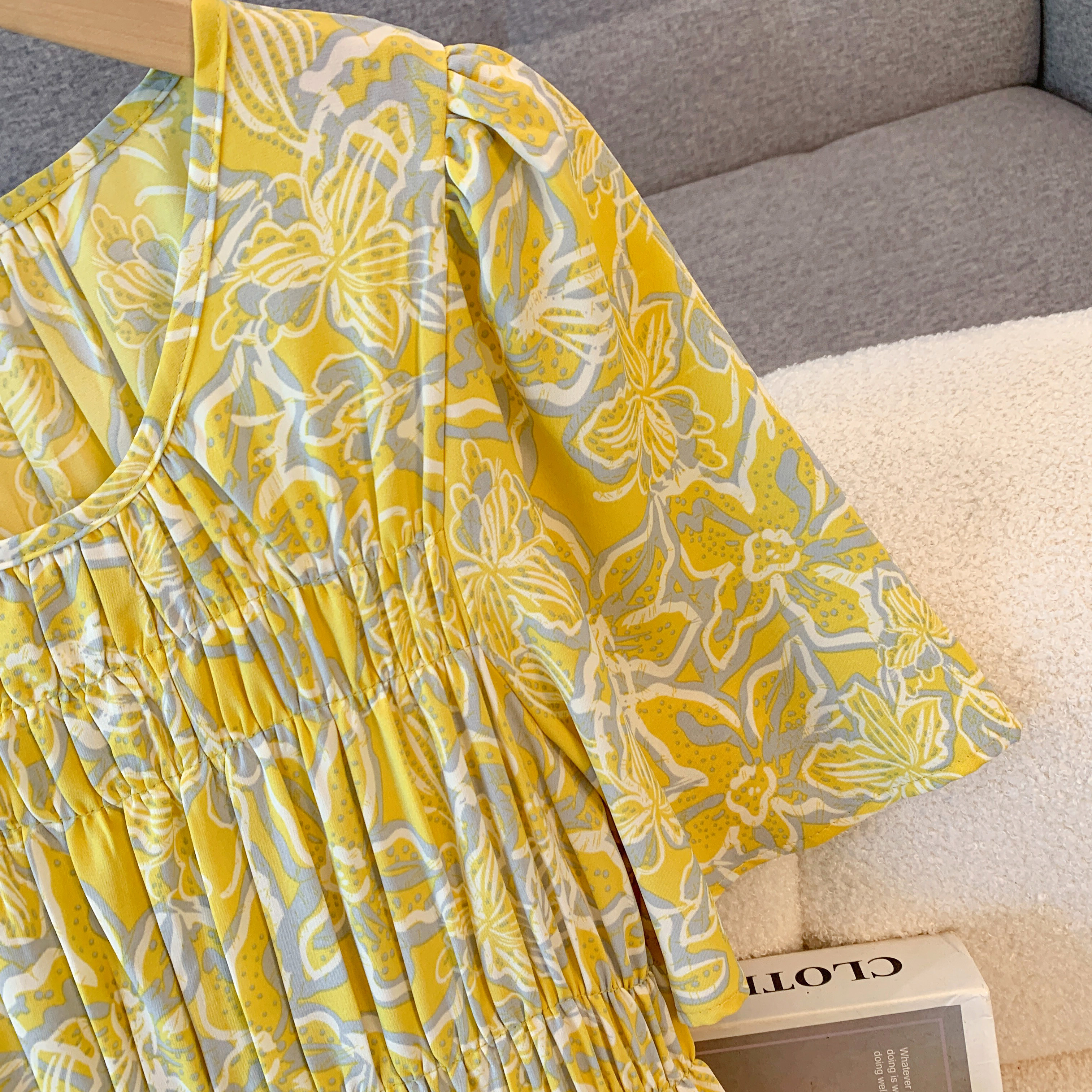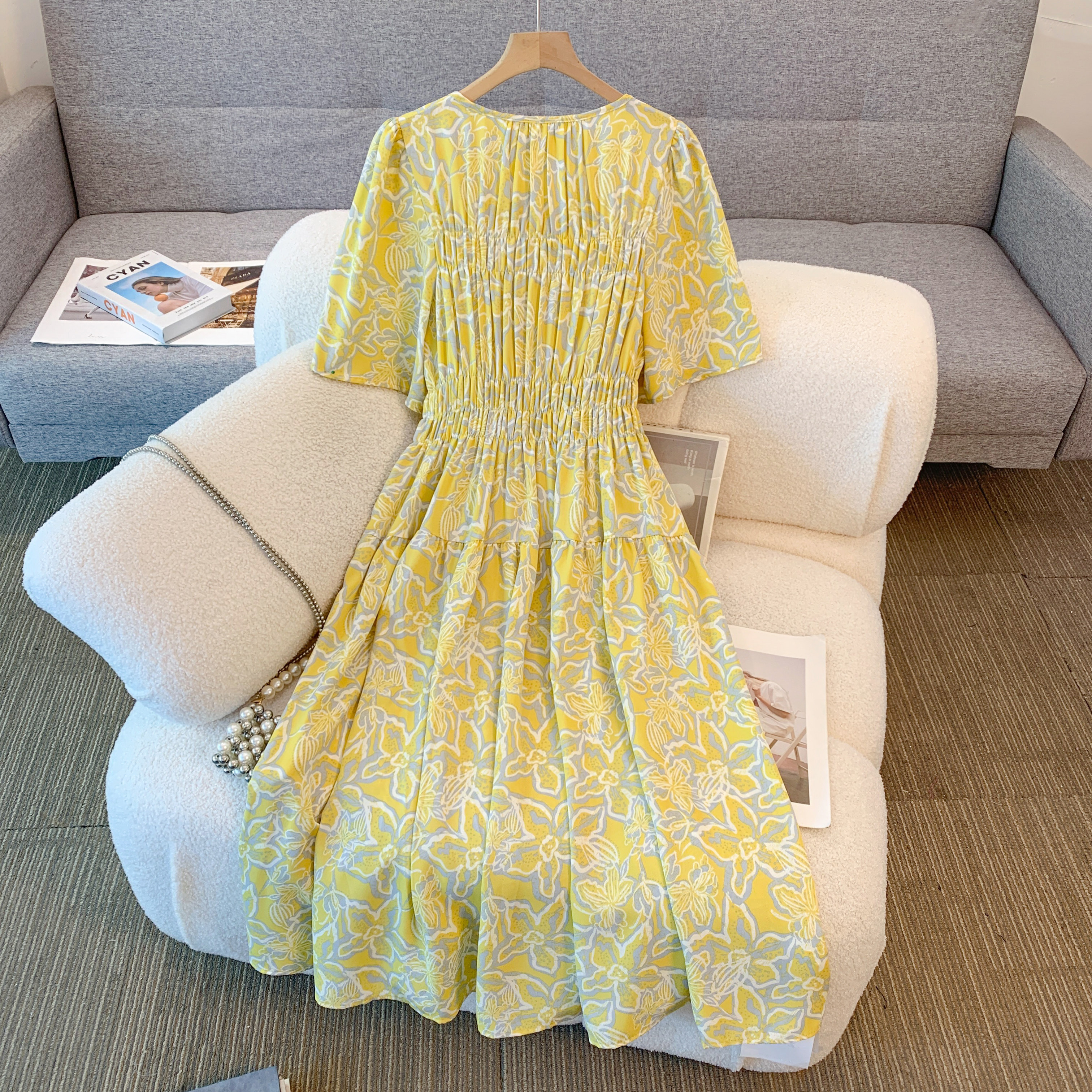 轻薄凉爽海边拍照绝美胖mm斤窄肩高腰飞飞袖显瘦连衣裙