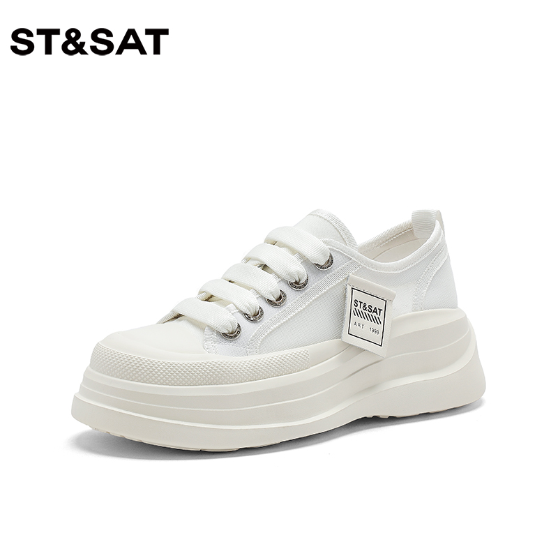 St&Sat/星期六春秋新款圆头系带松糕底休闲运动单鞋女SS32112D75