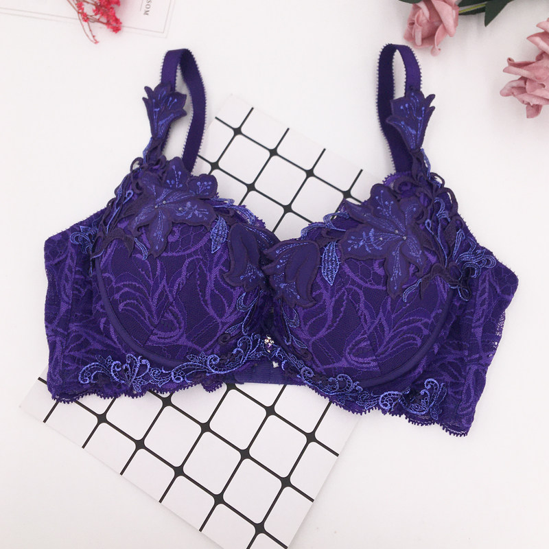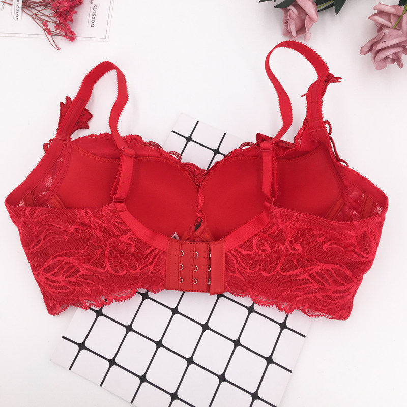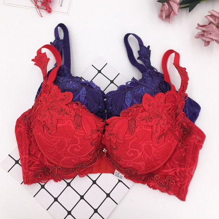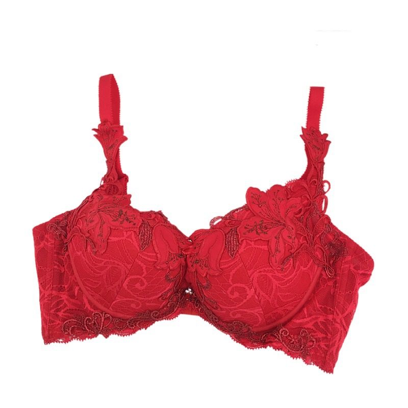 桑扶兰正品内衣女士刺绣性感胸罩红色聚拢舒适上薄下厚文胸AKG11