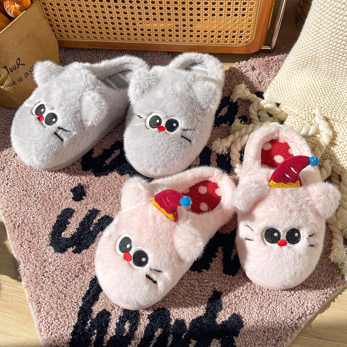 可爱猫咪棉拖鞋女室内居家厚底