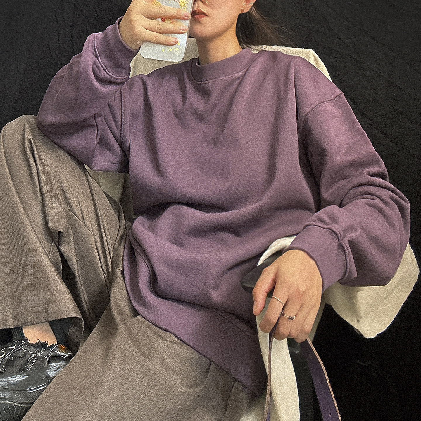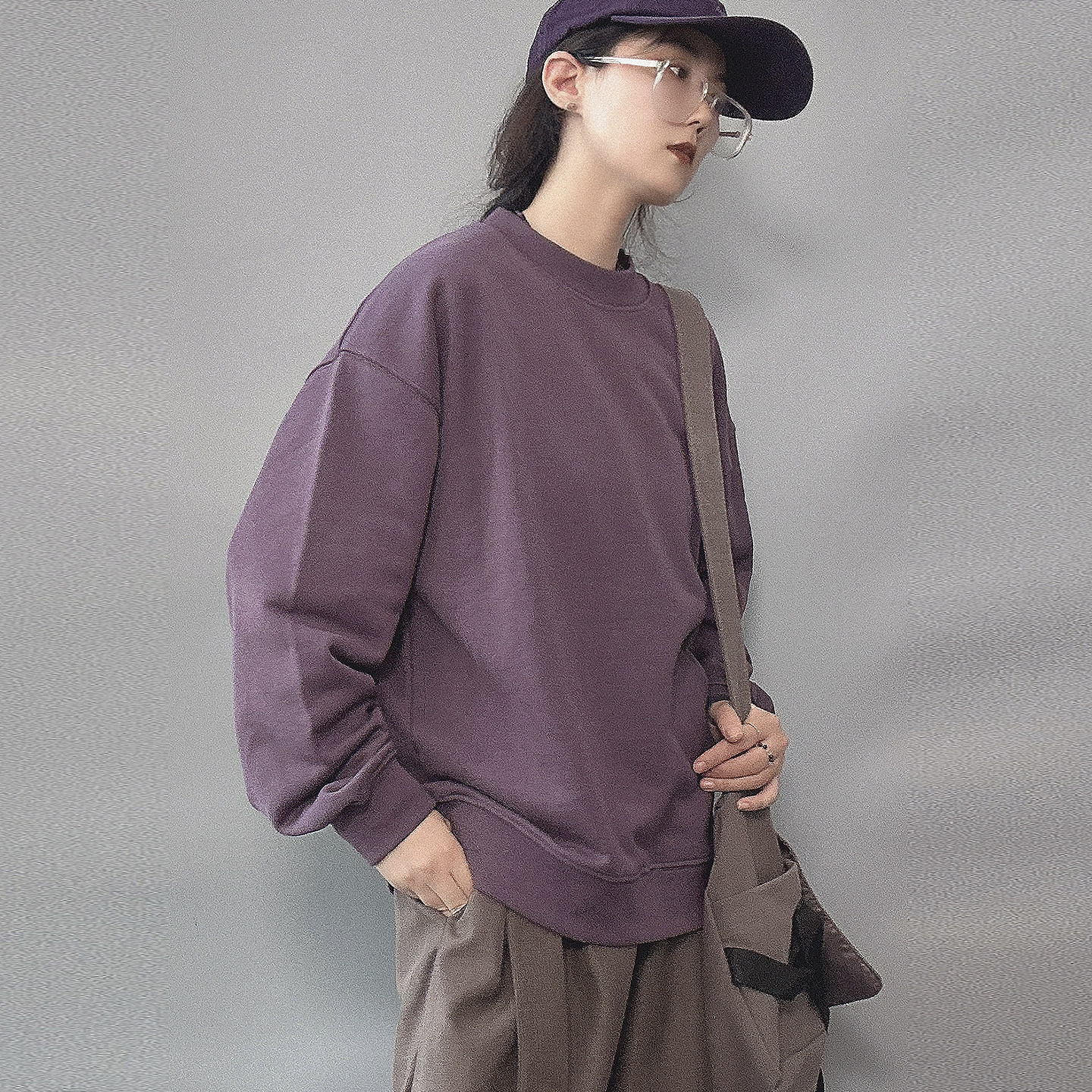 逆壳中性重磅纯棉紫色卫衣女男款学生宽松外贸百搭通勤长袖打底衫