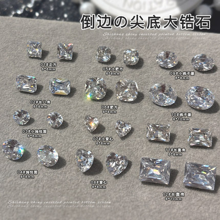 美甲饰品爆闪多切面爱心肥方鸽子蛋长直角异形钻石倒边尖底大锆石