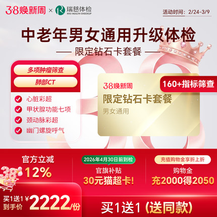 【买1送1】瑞慈体检 限定钻石卡高端深度检查套餐男女性通用