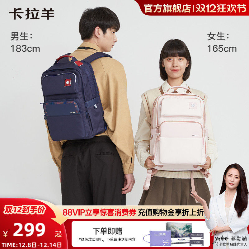 卡拉羊中学生云朵书包减负防下坠背包女轻便双肩包男大容量多隔层