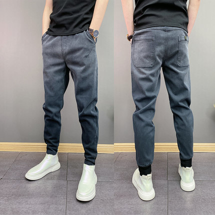 2025年春秋季新款潮流束脚裤青年男士小脚修身渐变ins休闲牛仔裤