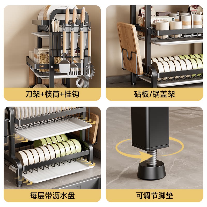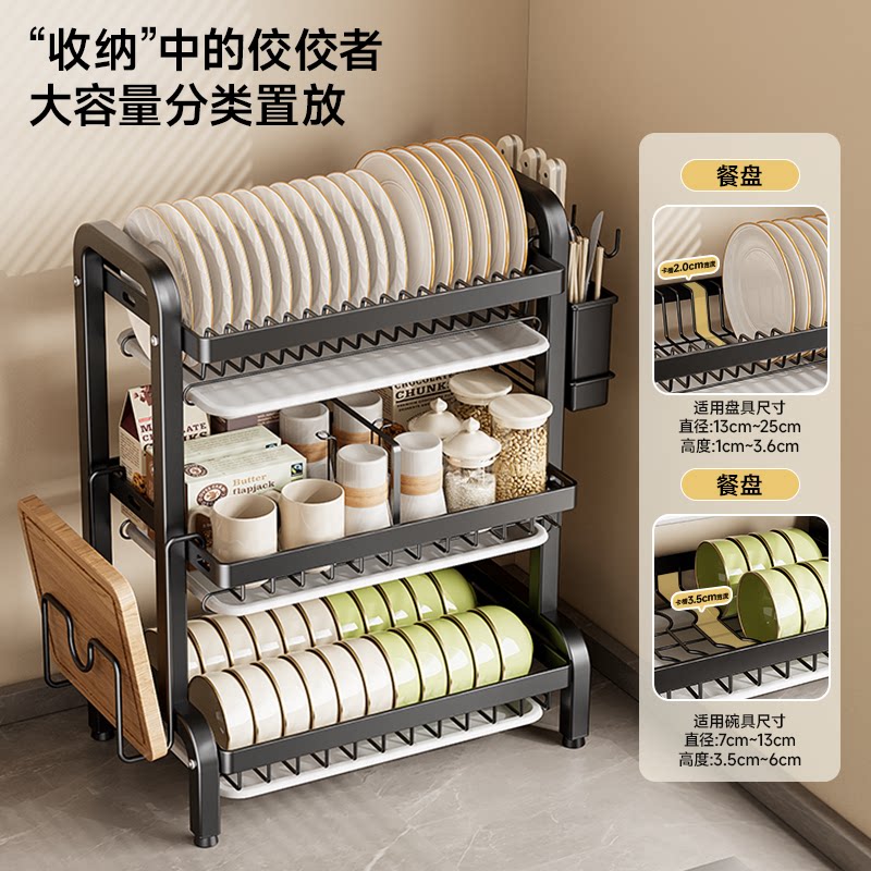 四季沐歌碗碟收纳架多功能置物架家用台面碗盘架沥水架碗筷收纳盒