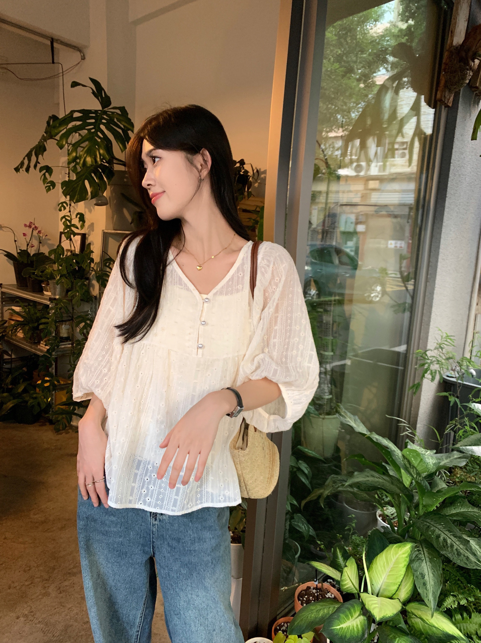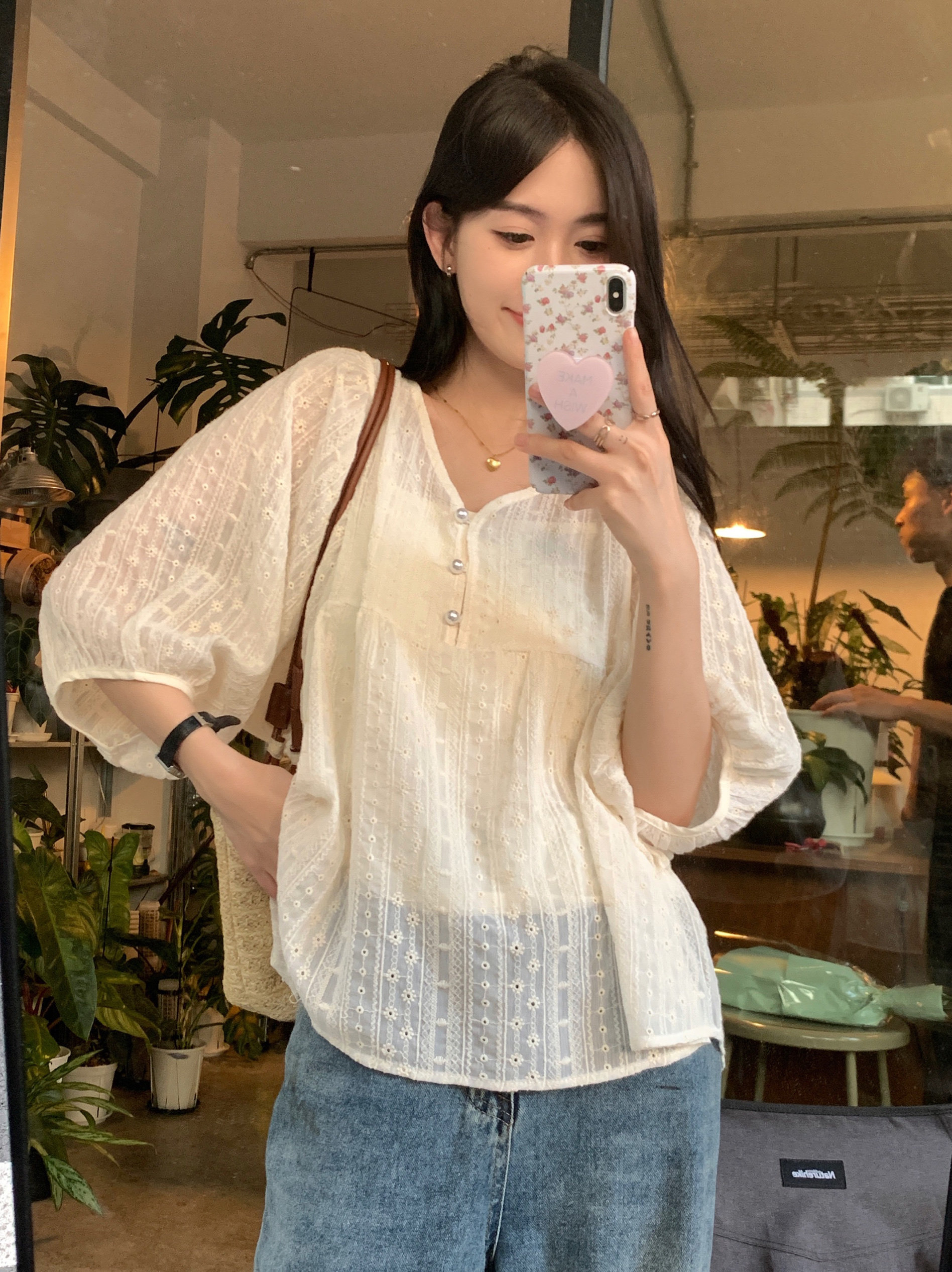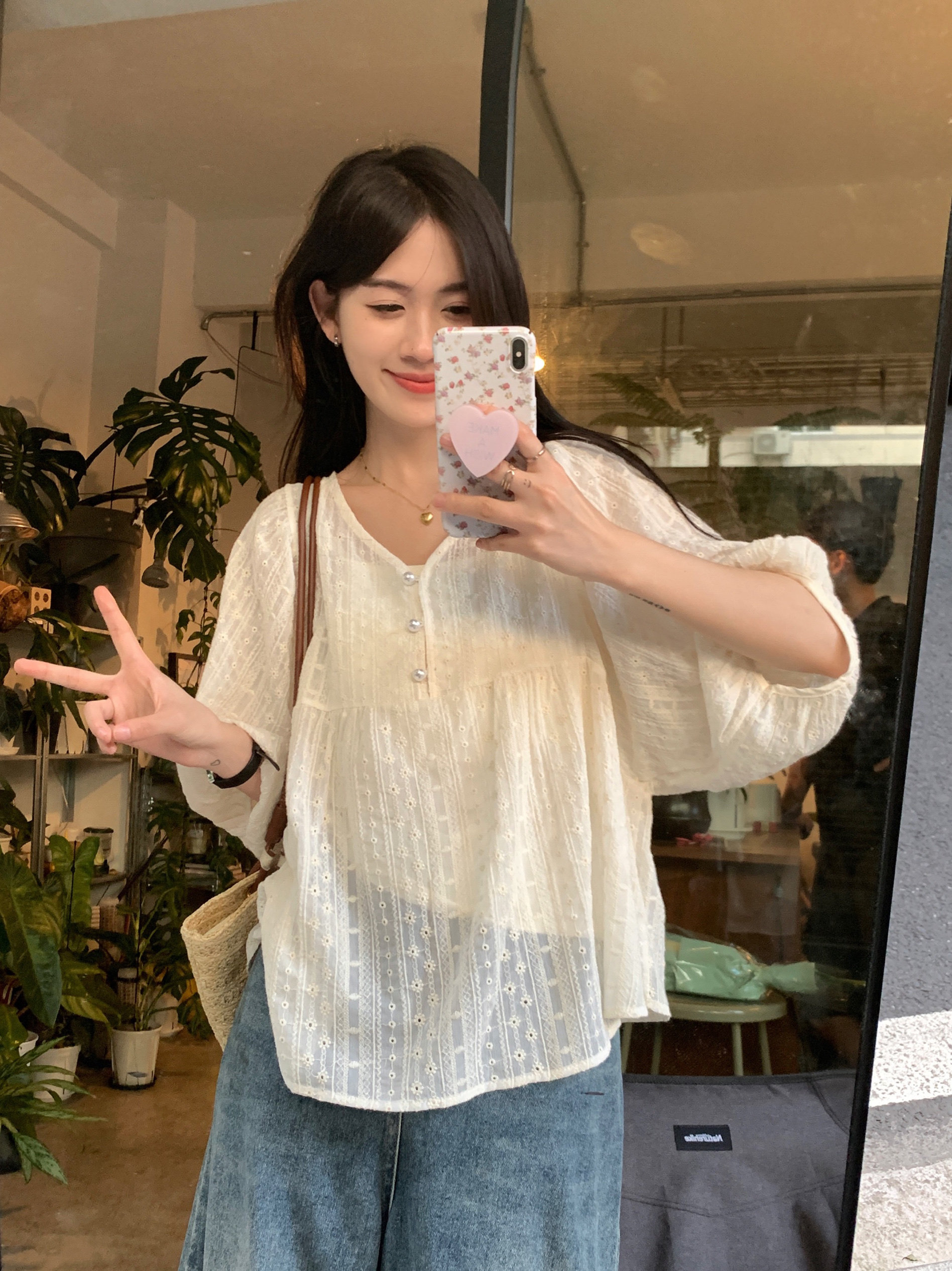 女胖mm大码显瘦新款蕾丝衬衫法式正肩早春V领宽松娃娃衫上衣减龄