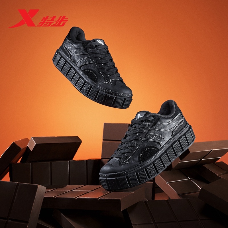 特步巧克力板鞋女鞋情侣鞋2024夏季男鞋厚底增高皮面休闲鞋运动鞋