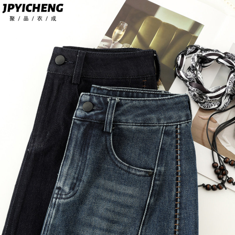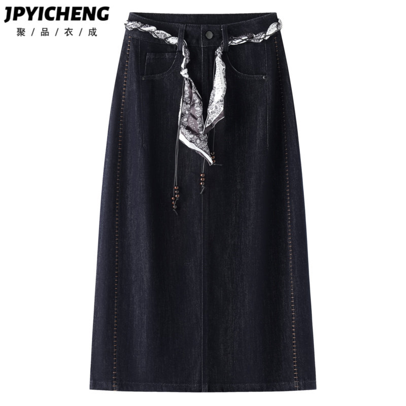 复古牛仔半身裙女2025新款冬季高腰显瘦后开叉直筒包臀裙长裙半裙