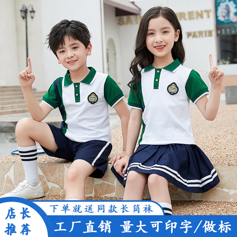 校服套装小学生夏季儿童纯棉短袖班服幼儿园园服夏装学院风演出服