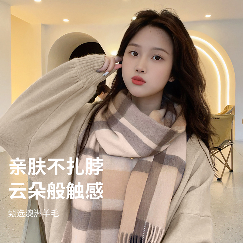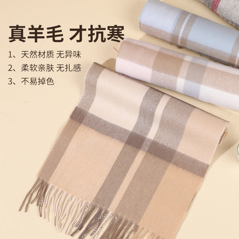 RD澳洲100%羊毛围巾女2025新款秋冬季高级感格子羊绒情侣围脖披肩