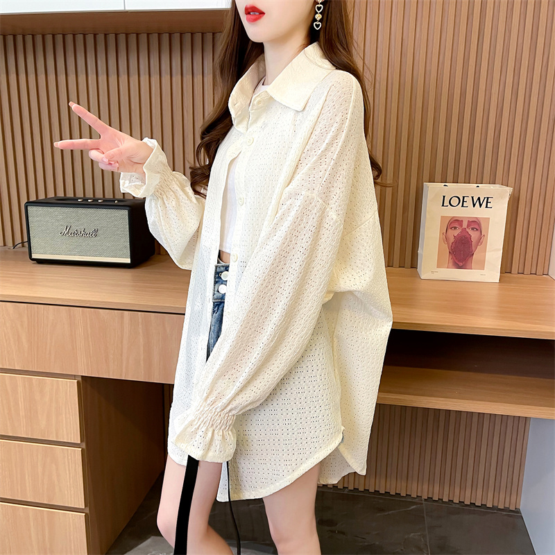 2025新款薄款防晒衫外套女夏季透气镂空设计感宽松中长款衬衫上衣