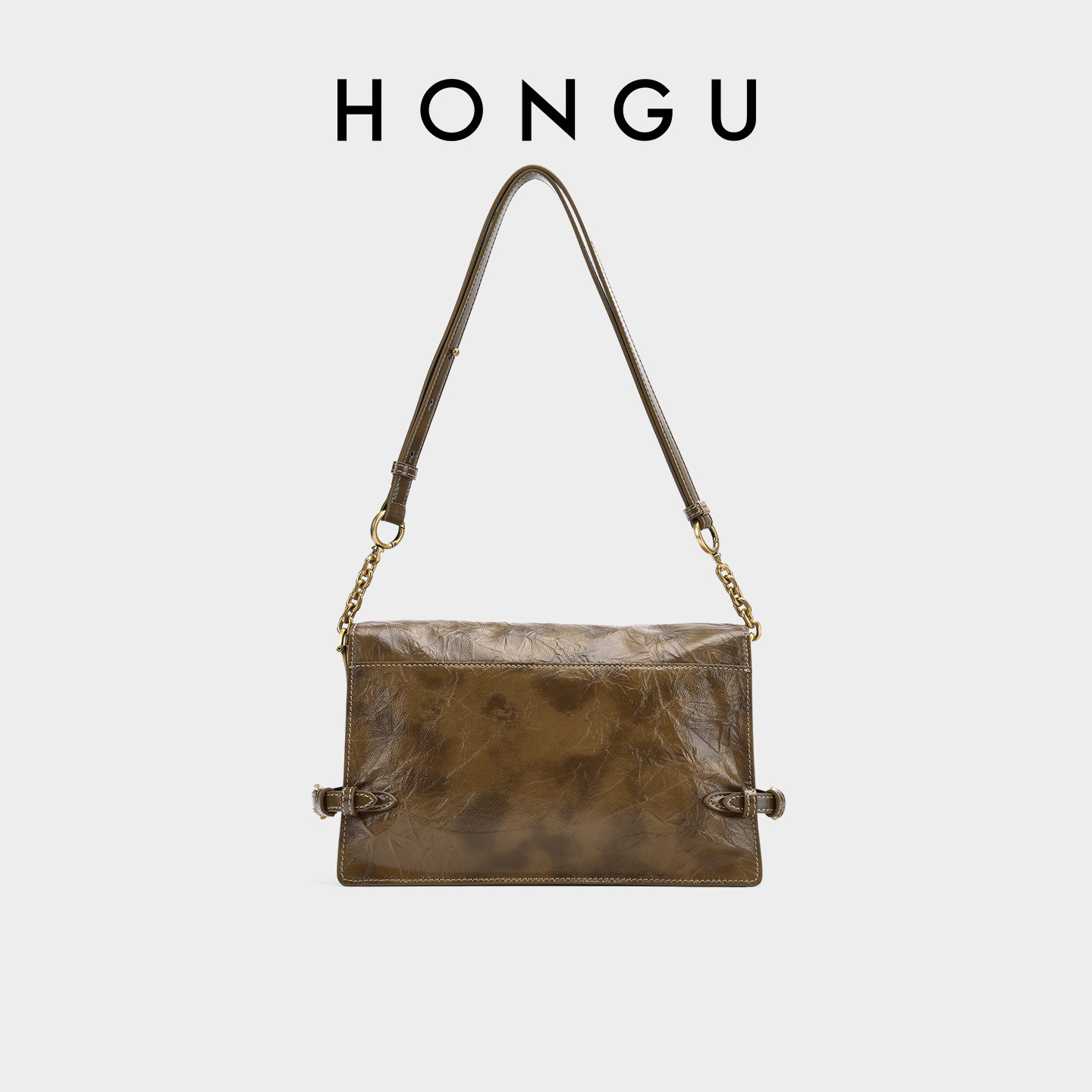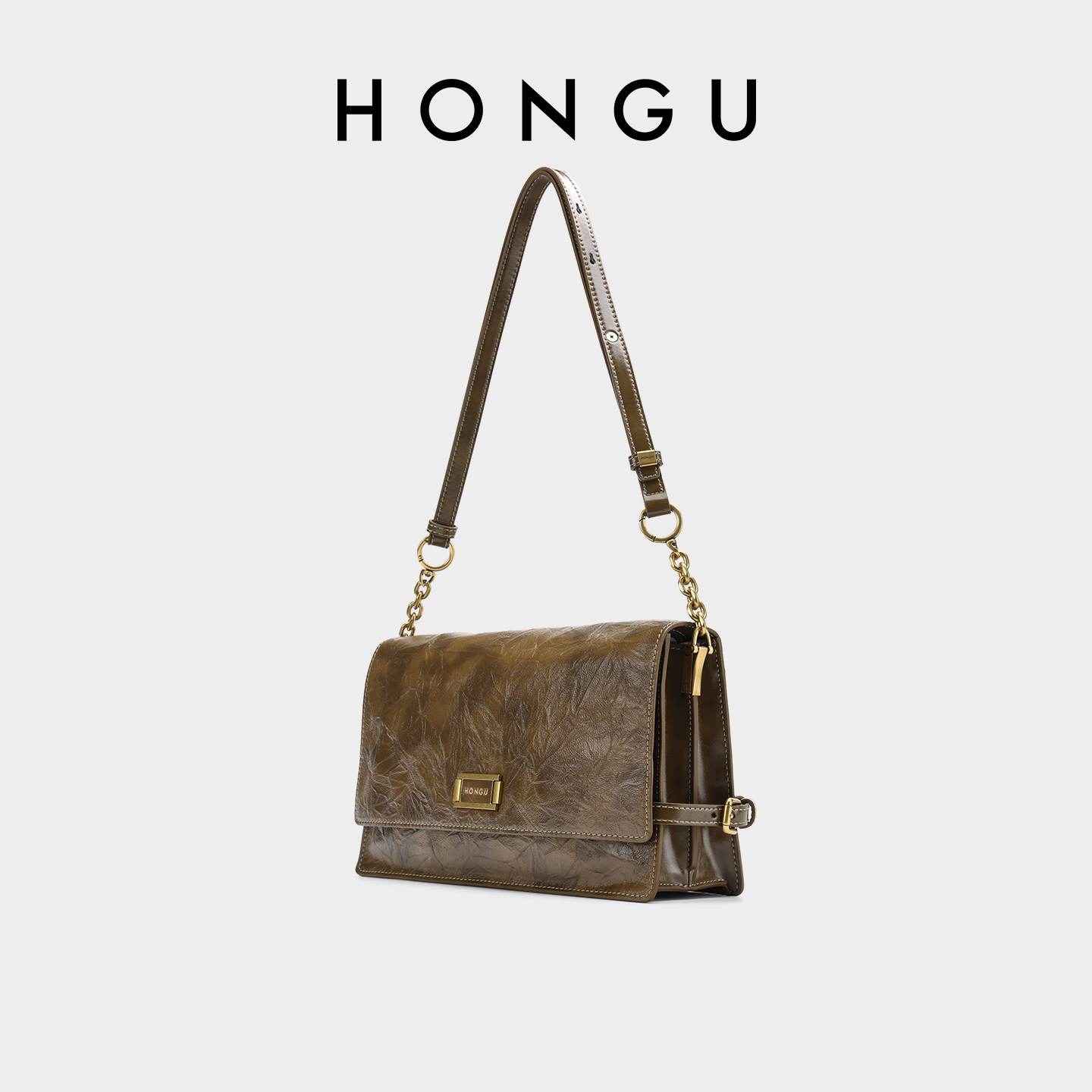 红谷包包2025新款真皮链条单肩腋下包复古高级感斜挎小方包女士包