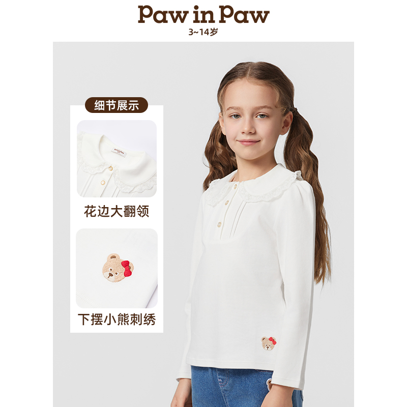 【熊宝棉】PawinPaw卡通小熊童装25年春夏新款女童翻领长袖T恤